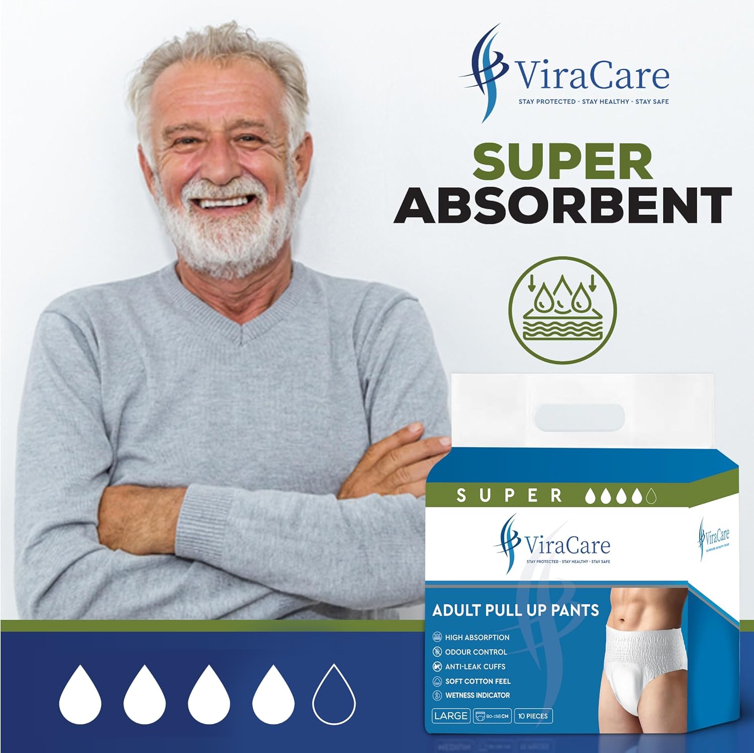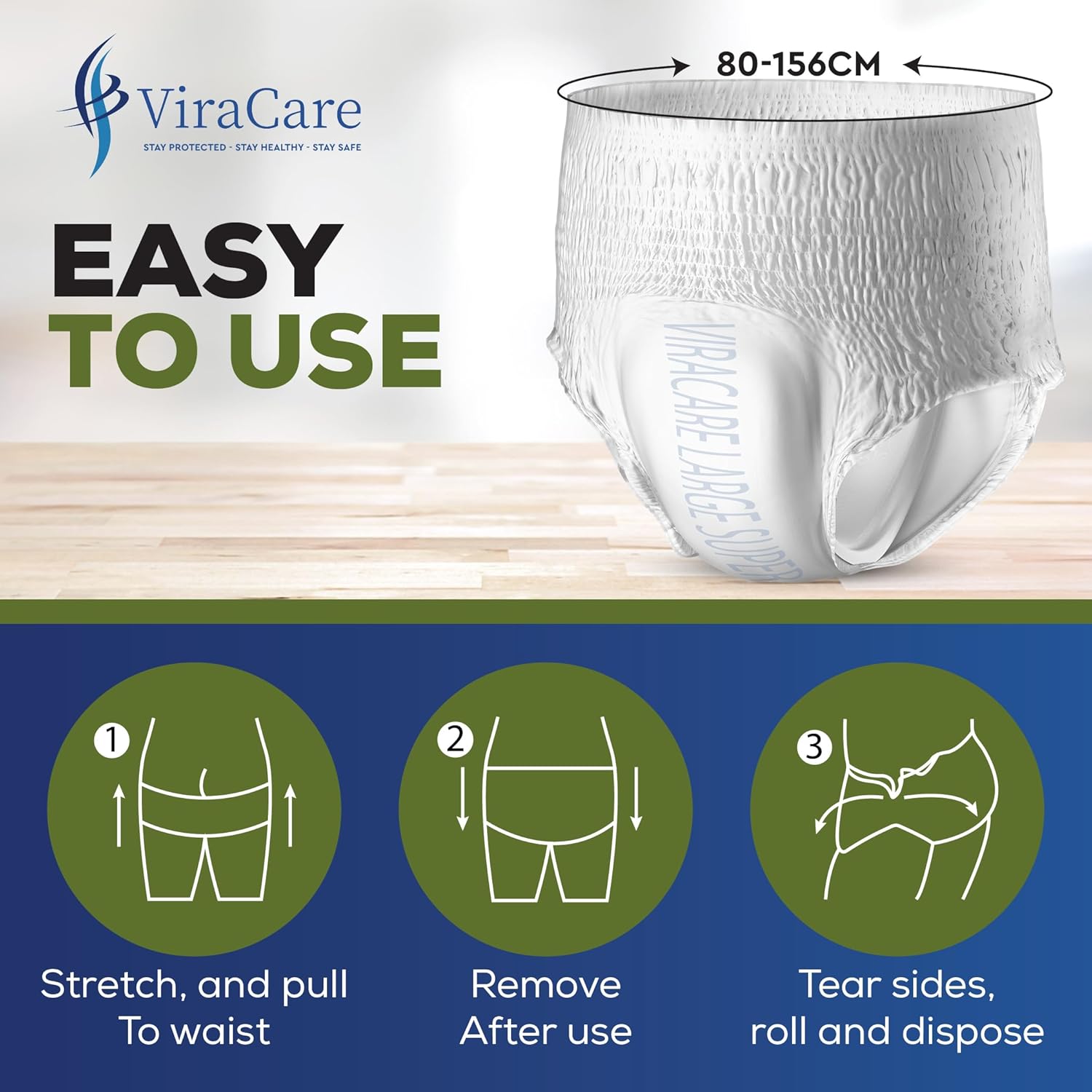 WETNESS INDICATOR & COMFORTABLE FIT: Our adult diapers designed for everyday comfort and hygiene. Our pull ups pants gives you a fit close to body and gives you a confidence and protection.Wetness indicator making it easier to spot when changes are needed.
