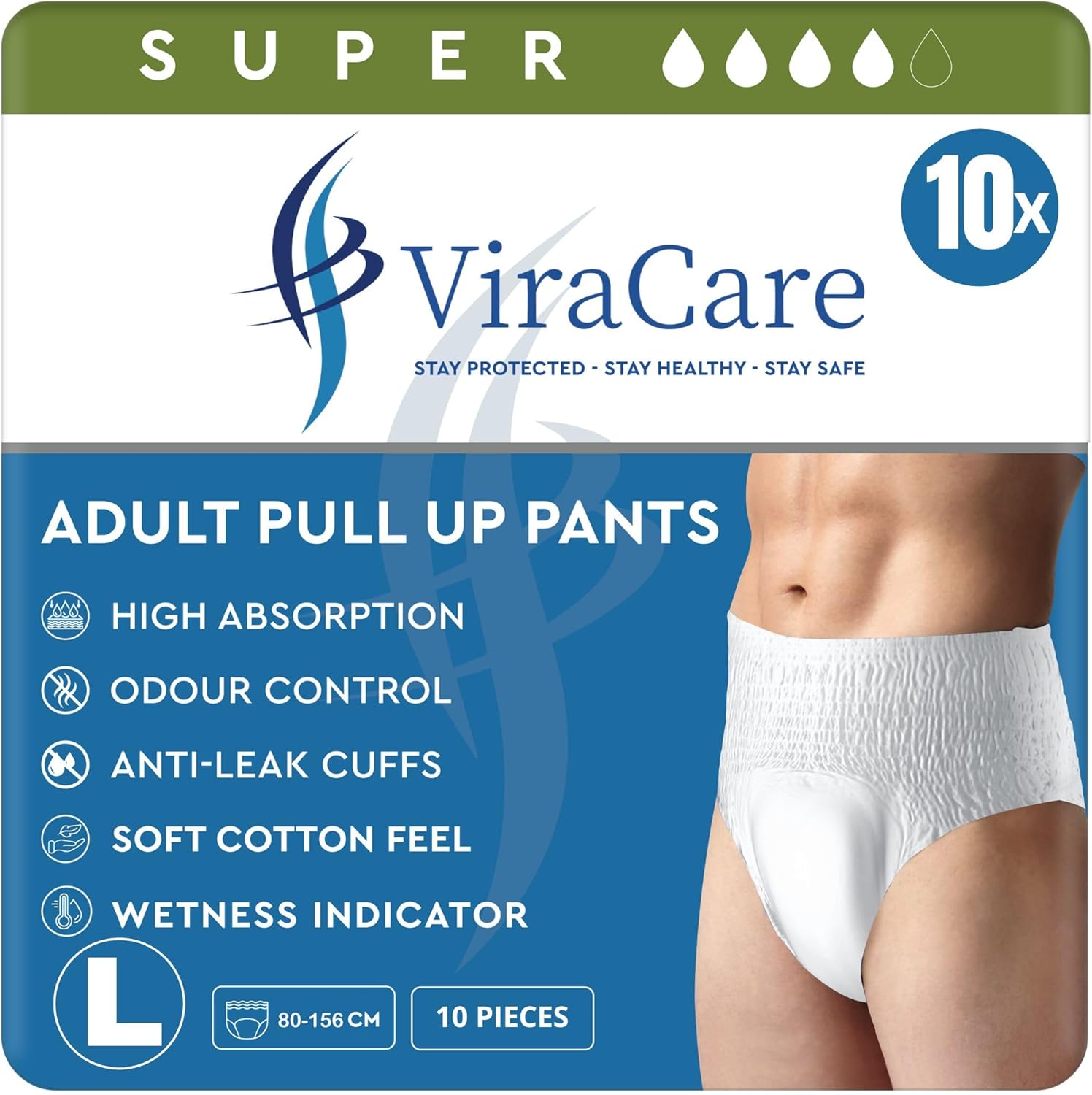 10 x Incontinence Pants Men & Women | with Wetness Indicator & Soft-Stretch Waistband | Disposable Adult Nappies | Waist Size Large 80-156 cm | Adult Diapers | (1 Pack of 10)