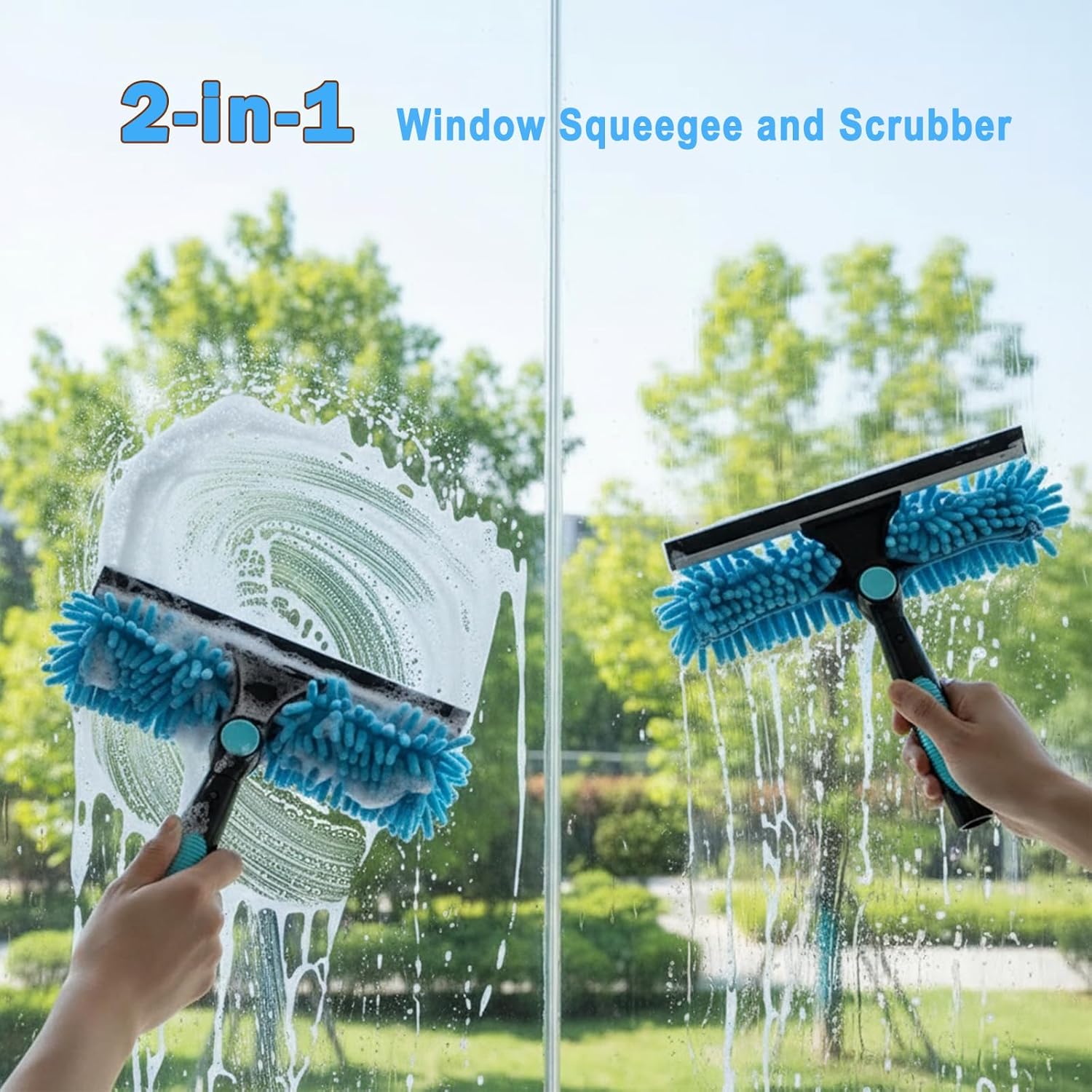 Machine Wash And Detachable 2 Cloths: Our window cleaning kit with features two interchangeable scrubber covers for versatile cleaning.Velcro design, easy to replace. Microfiber cloth is used to remove stubborn stains, chenille cloth is extremely absorbent and quickly cleans the window surface , suitable for cleaning all surfaces.