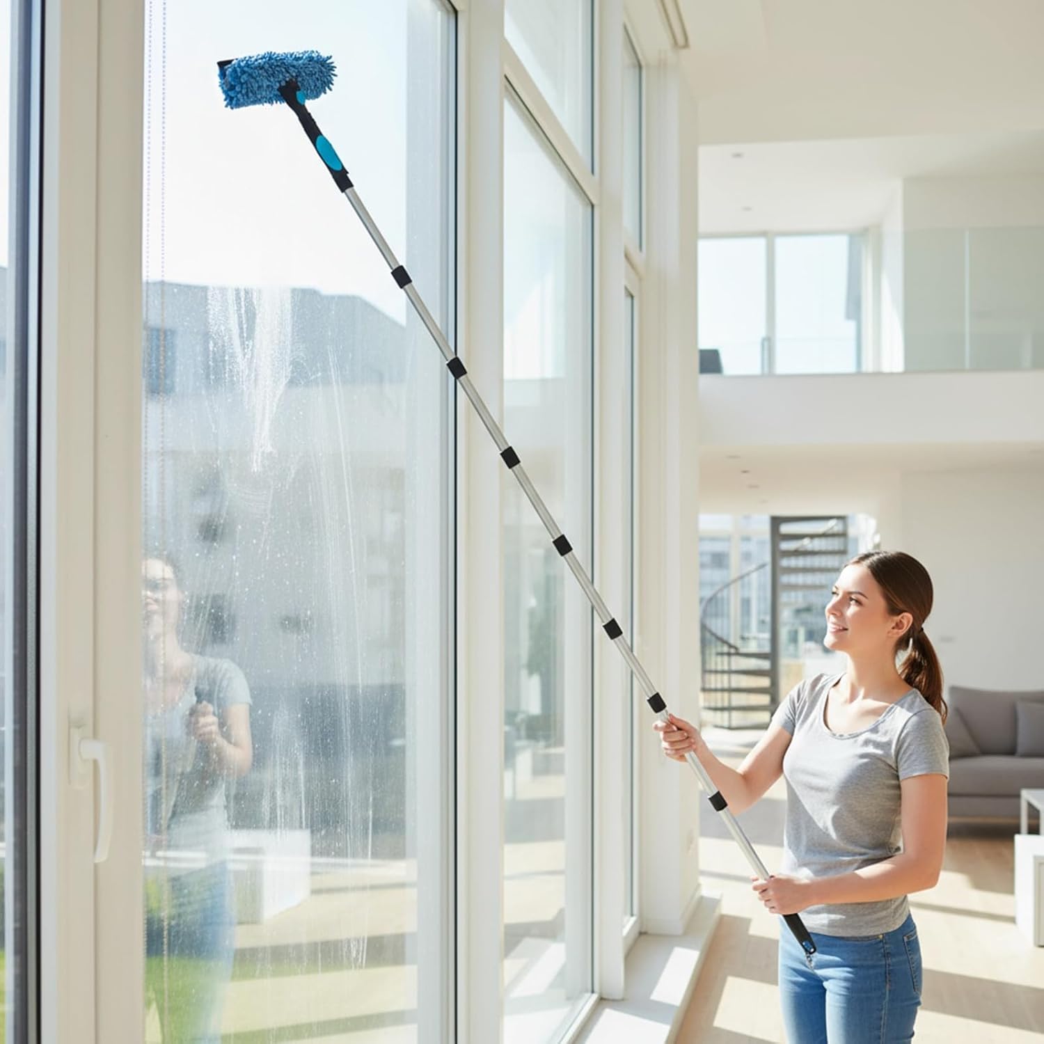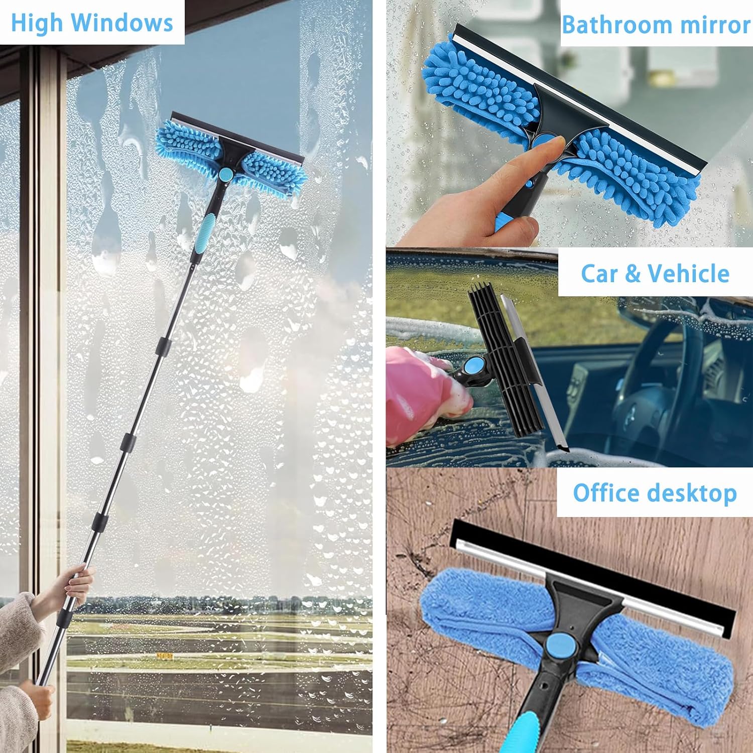 Works Everywhere: This versatile window cleaning tool features an adjustable-length handle,making it ideal for reaching high windows as well as effortlessly cleaning kitchen countertops, bathroom mirrors,glass shower doors, garage doors,walls,and conservatory glass.