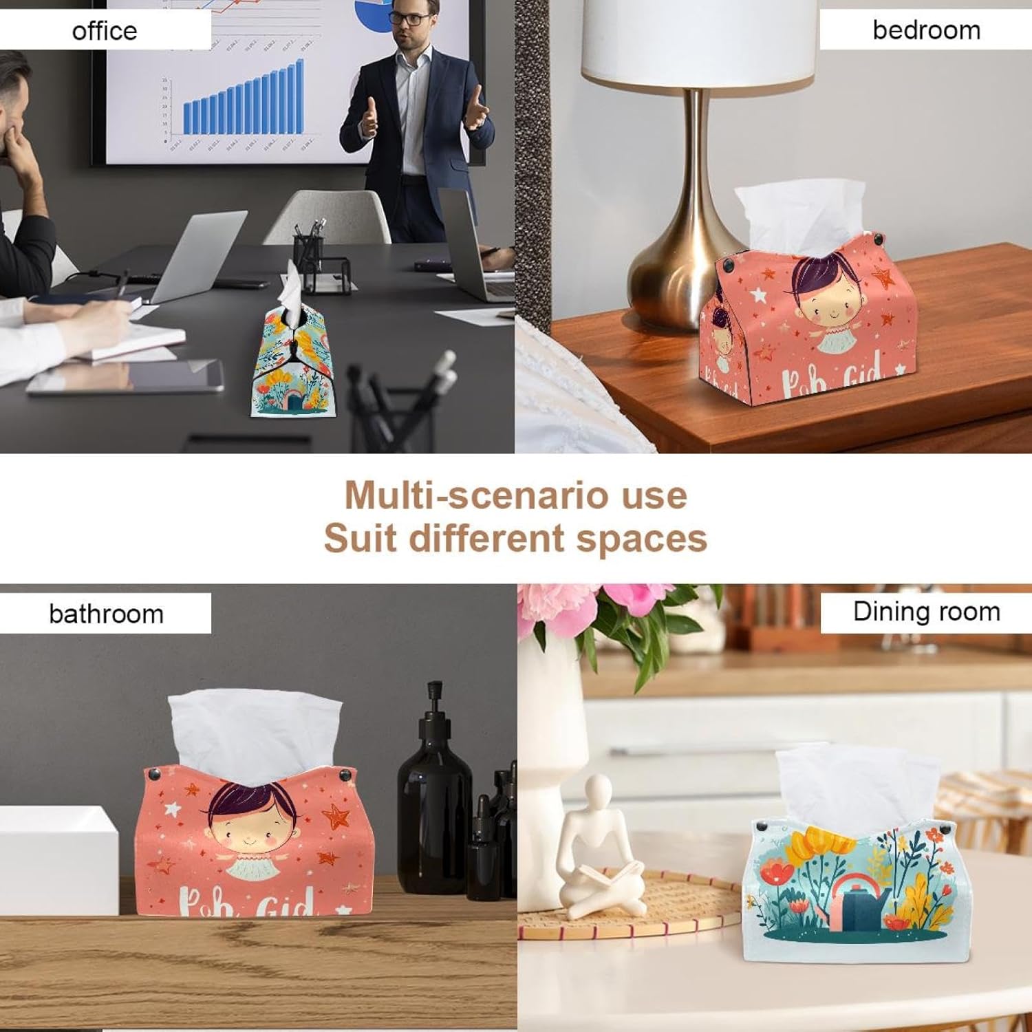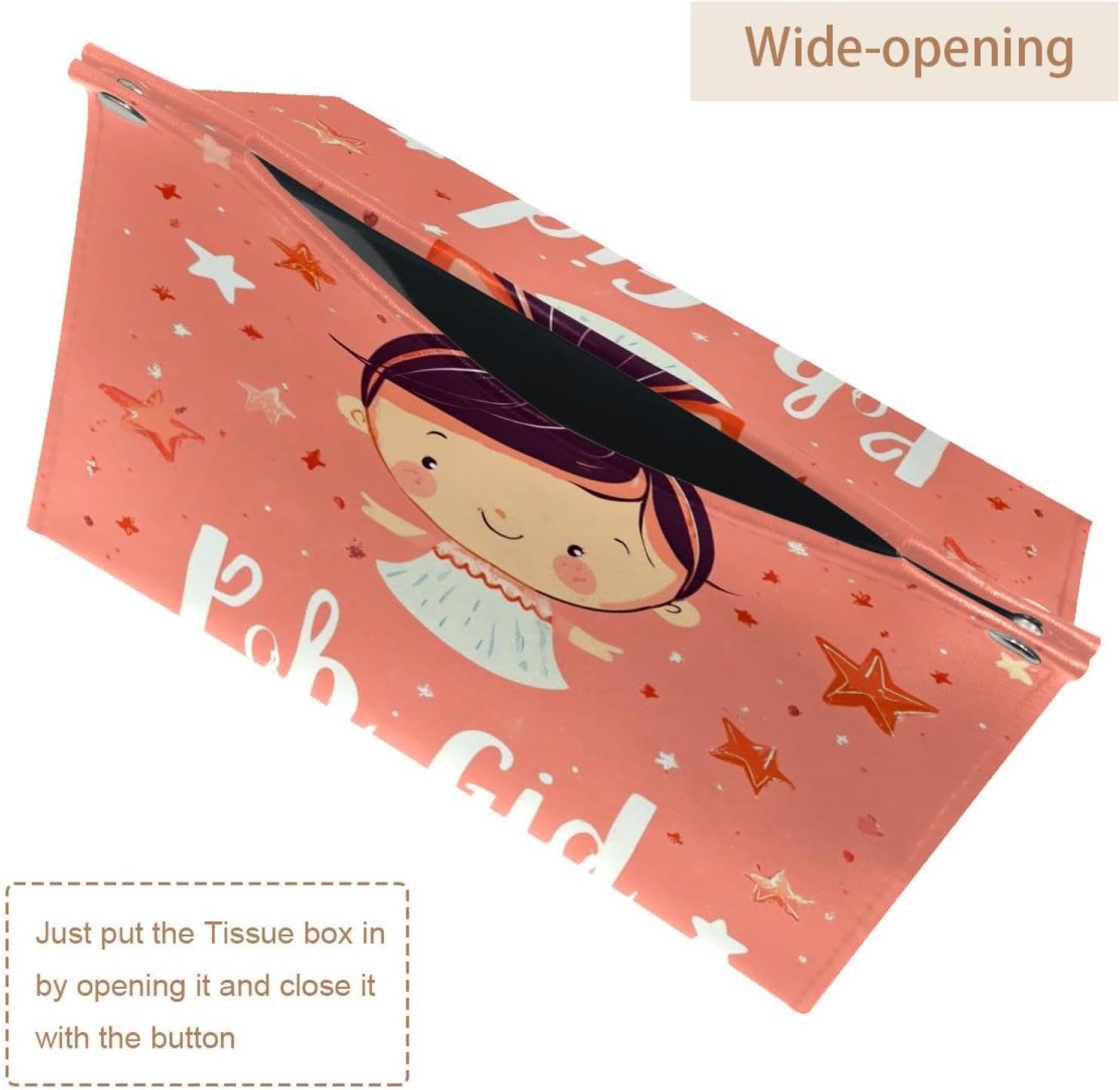 2 pack Hello baby Tissue Box Cover Leather Tissue Holder Facial Tissue Case Paper Organizer for Bathroom, Vanity Countertop, Tabletop, Car