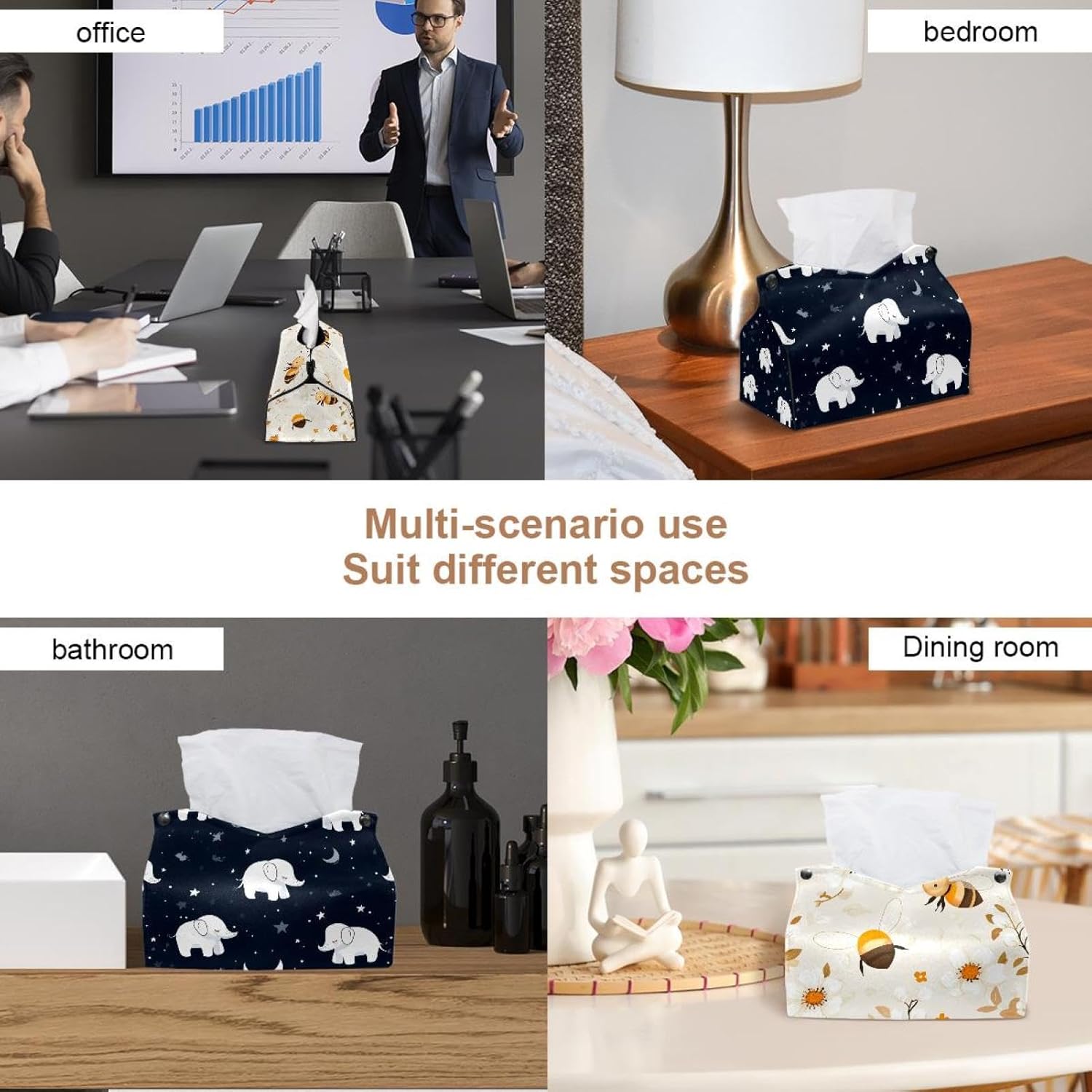 Easy to Clean: The surface of the decorative tissue holder is made of leather, which is durable and waterproof, just wipe it with a damp cloth.By incorporating a tissue box cover into your home, you can enjoy a combination of practicality, durability, and modern design.