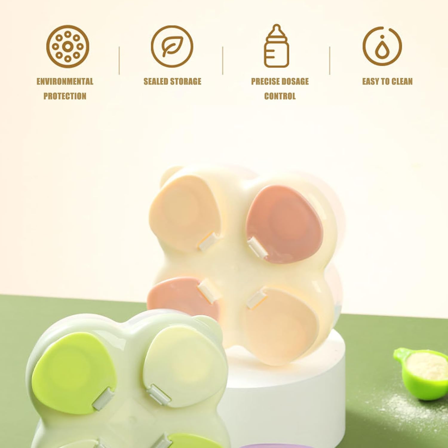 Portable 4-compartment milk dispenser with rotating lid ensures precise portioning and easy access, perfect for busy mornings or travel feeding