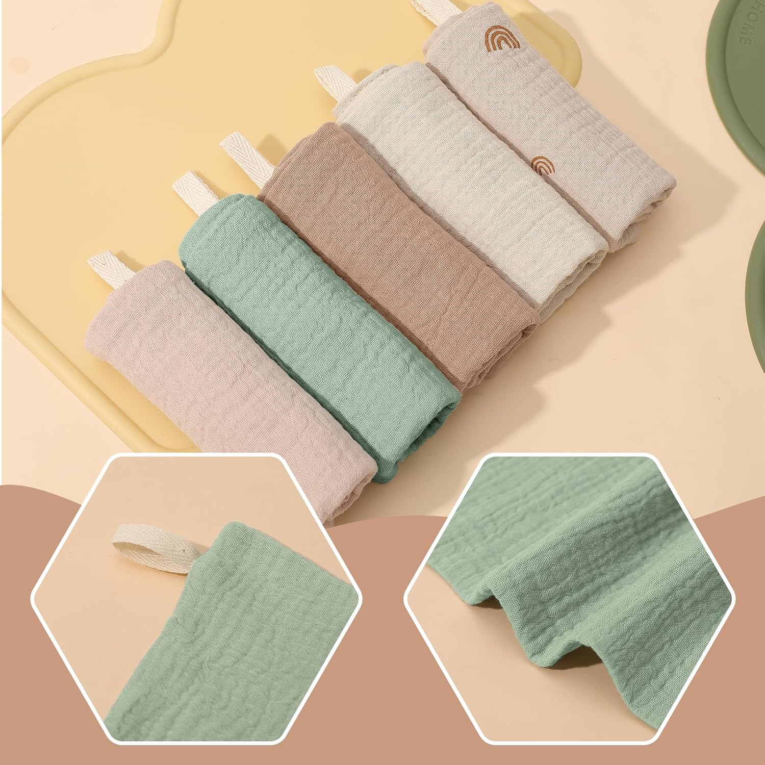 5 Pack Baby Muslin Cloths 100% Cotton Muslin Squares 23x22cm Baby Burp Cloths With Hanging Loop Essentials For Newborn Wiping Feeding