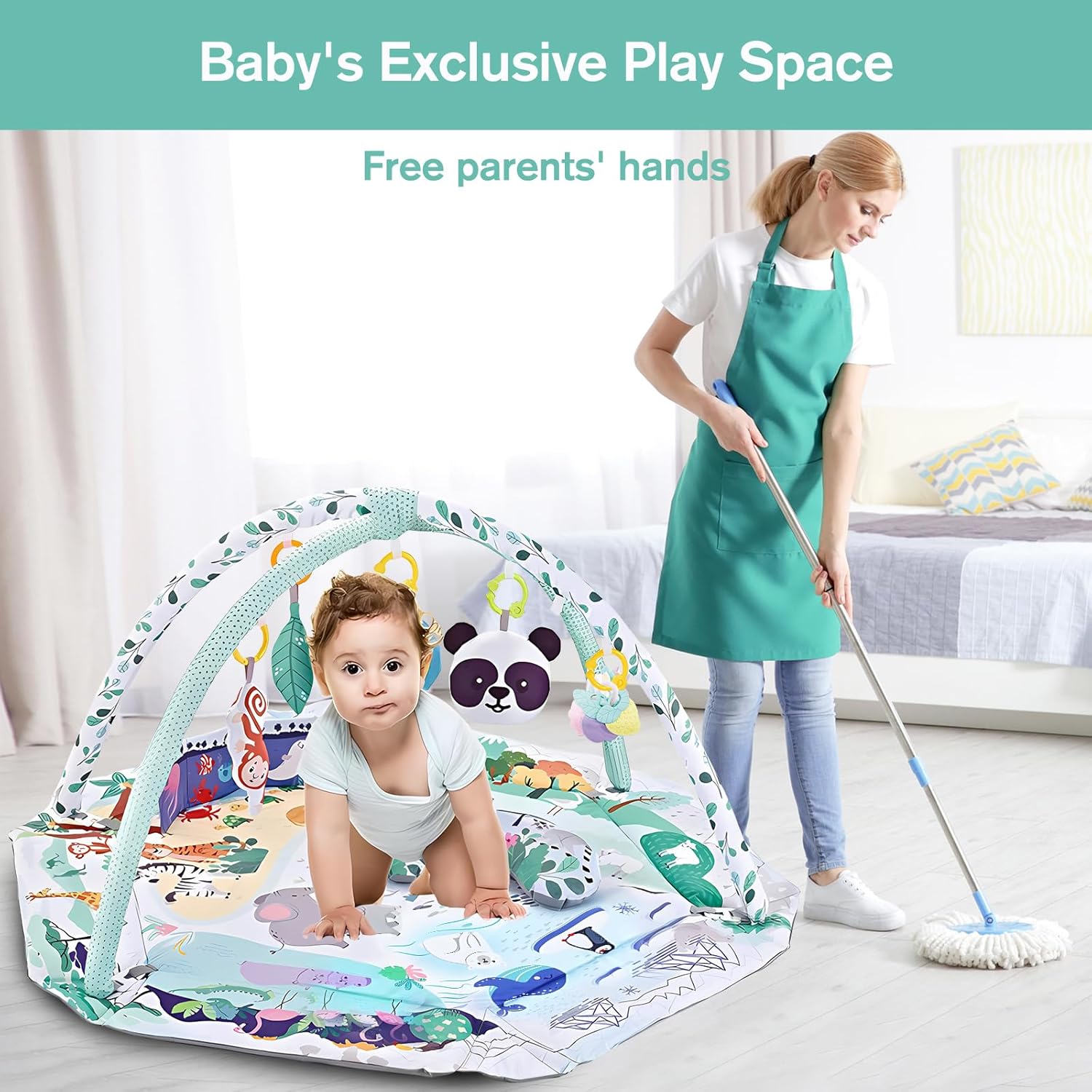 IDEAL BABY GIFT The Montessori Baby Gym Play Mat promotes sensory development and hand-eye coordination. It is suitable for newborn boys and girls from 0 months. Also a great gift for twins. It can be used as a baby shower gift, 1st birthday gift, 3 4 5 6 7 8 9 10 11 12 18 months toddler and 1 year old baby Christmas/Thanksgiving gift.