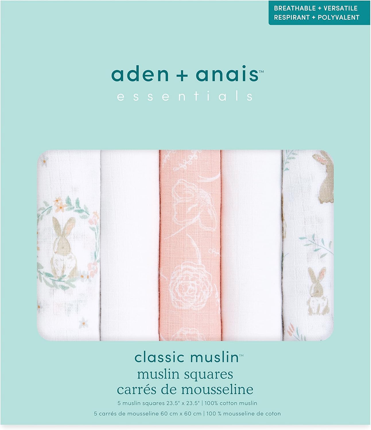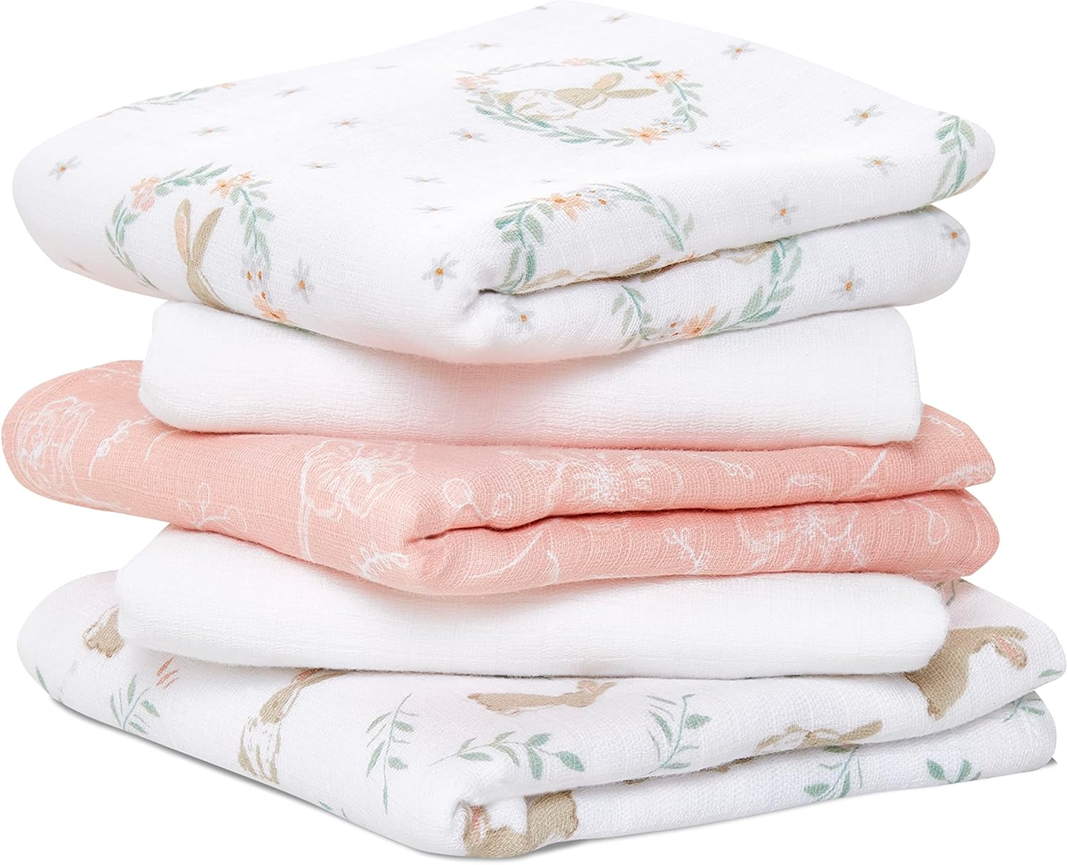 Aden + Anais™ Essentials Cotton Muslin Burp Cloths Blushing Bunnies in Pack of 5