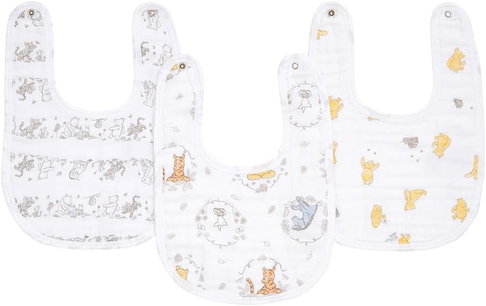 aden + anais essentials Snap Baby Bib, 100% Cotton Muslin, 3 Layer Burp Cloth, Super Soft & Absorbent for Infants, Newborns and Toddlers, Adjustable with Snaps, 3 Pack, winnie + friends
