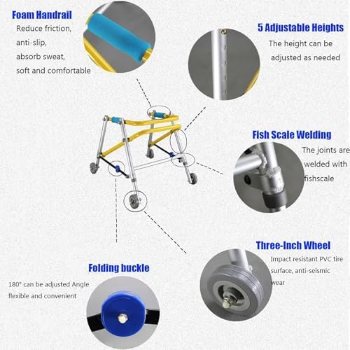Adjustable Child Gait Trainer, Folding Four-Wheeled Walker for Rehabilitation and Exercise, Height Adjustable Rollator Walker for Mobility Support