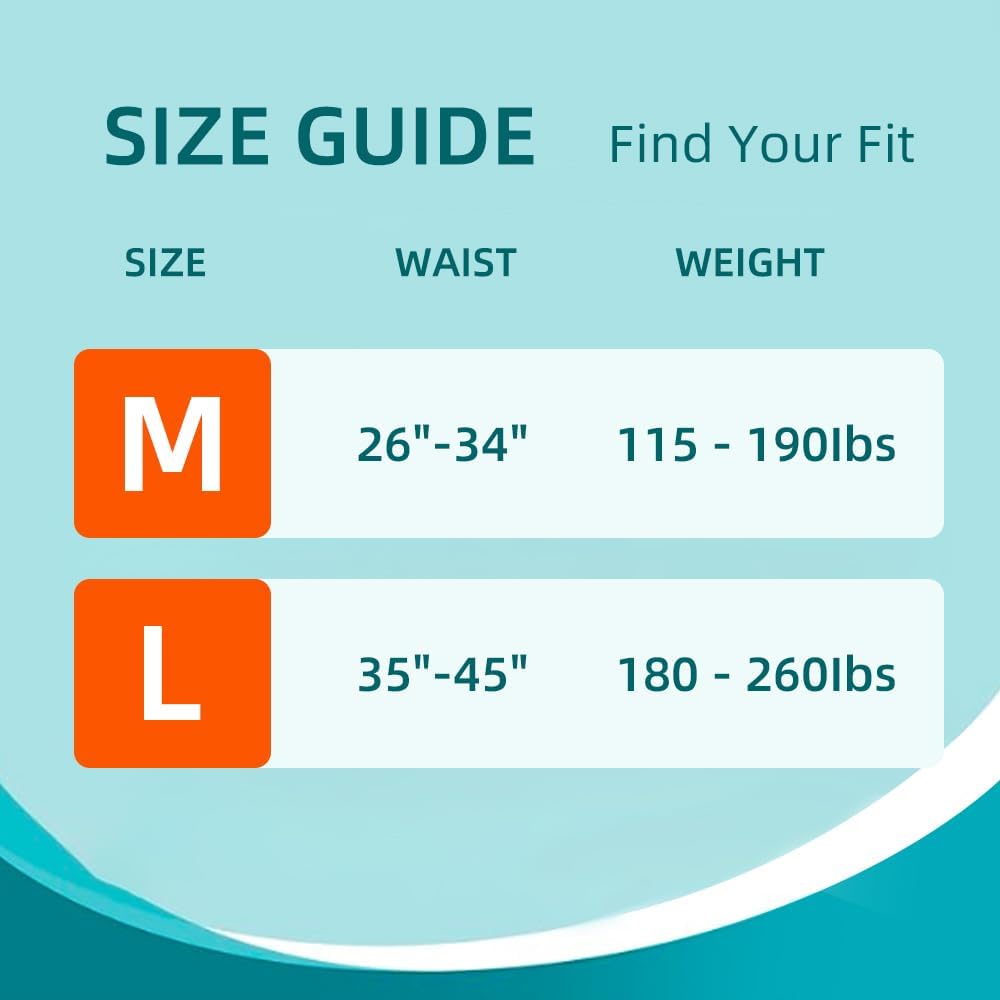 Comfortable & Close-fitting Design: We have specially designed two different styles so that every user can find a suitable incontinence adult diapers. Size M is suitable for users with waist circumference of 26″-34″ and weight of about 115-190 lbs, while size L is suitable for users with waist circumference of 35″-45″ and weight of about 180-260 lbs.