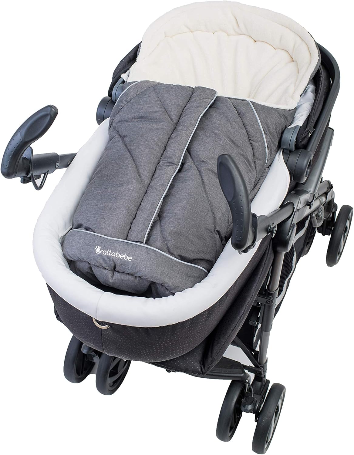 Winter foot muff AltaBeBe for baby car seat and car seat with 3 and 5 point belt technology