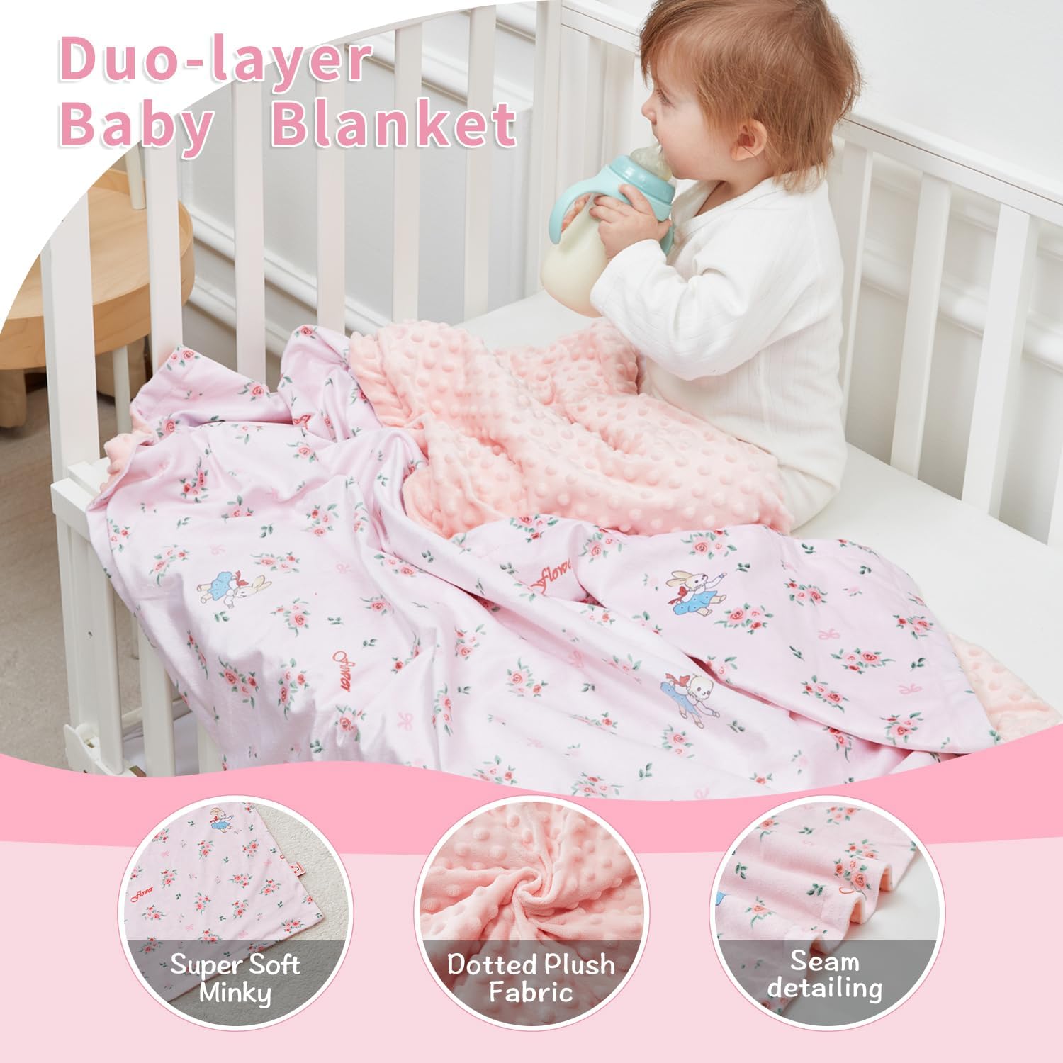 Double-Layer Design for Ultimate Comfort:Our baby blankets newborn soft feature a super-soft printed fabric on the front and a micro fleece back with raised dots, ensuring gentle warmth and comfort for your baby’s delicate skin. Perfect for baby boys, girls, and toddlers, this design is ideal for year-round use, keeping your little one cosy in winter and breathable in summer.
