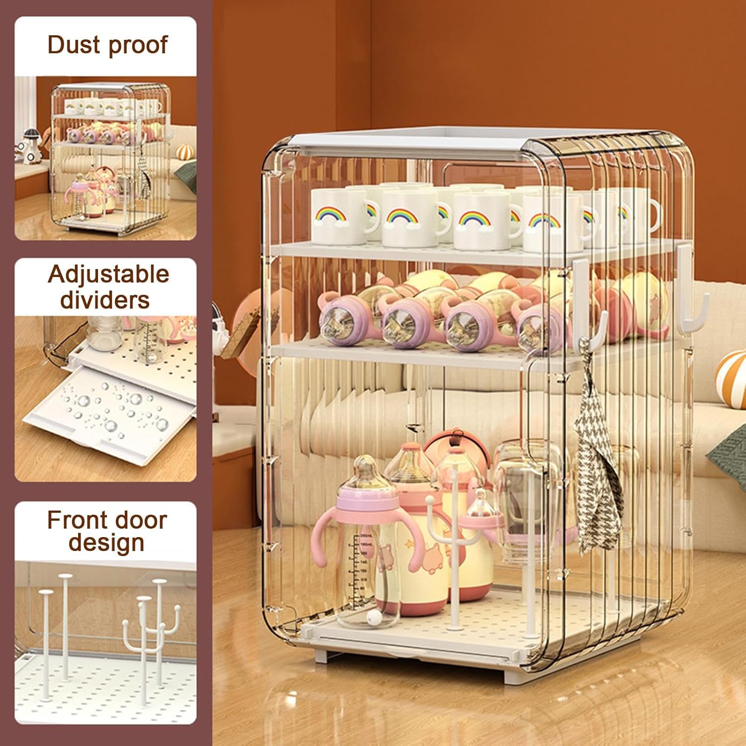 Baby Bottle Storage Organizer, Baby Bottle Drying Rack, Multi Layer Dustproof Storage Box For Kitchen, Nursery, Refrigerator, Bedroom, Dormitory