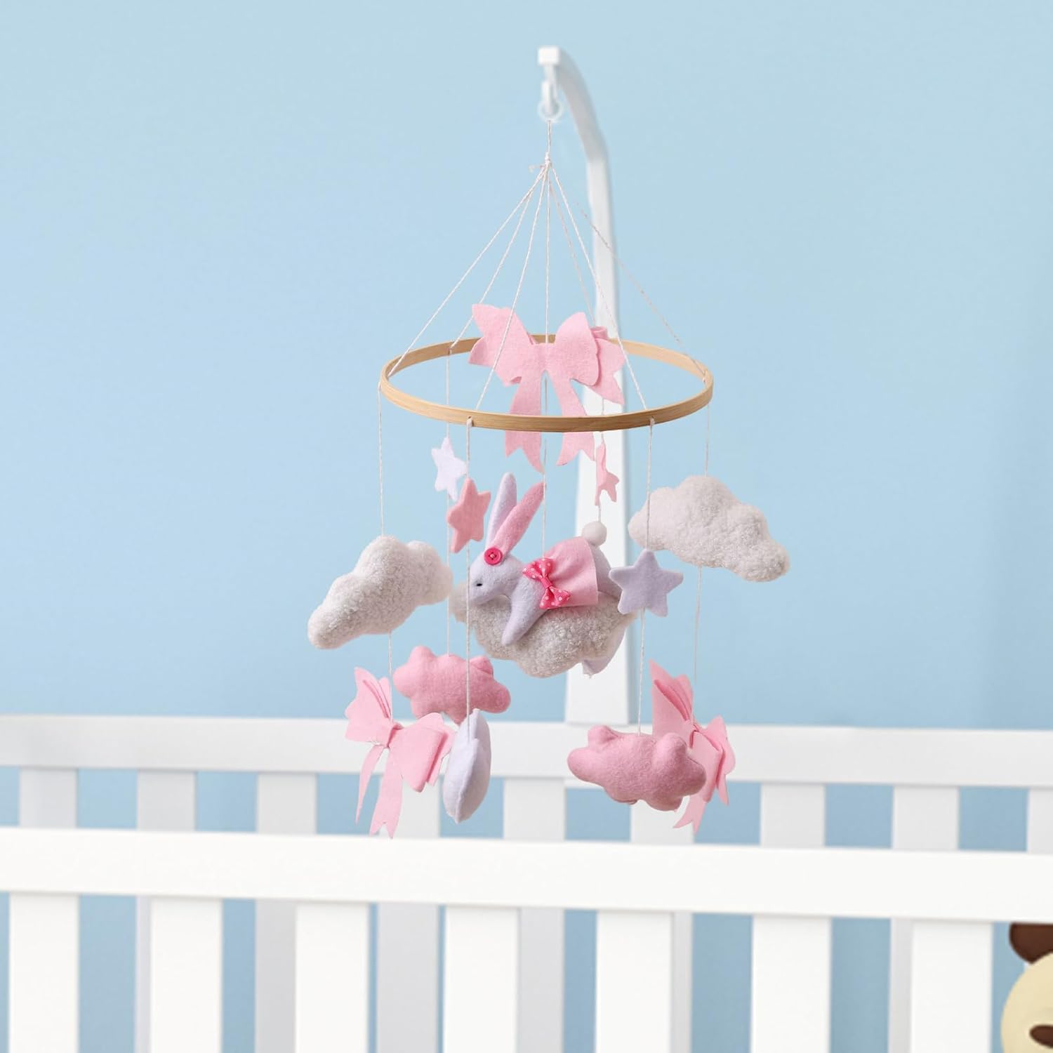 Baby Crib Mobile – Baby Nursery Mobile with Bunny and Bow | Boys Girls Rotating Sensory Toy Bohemian Ornament for Bedroom Bassinet Window Wall Living Room