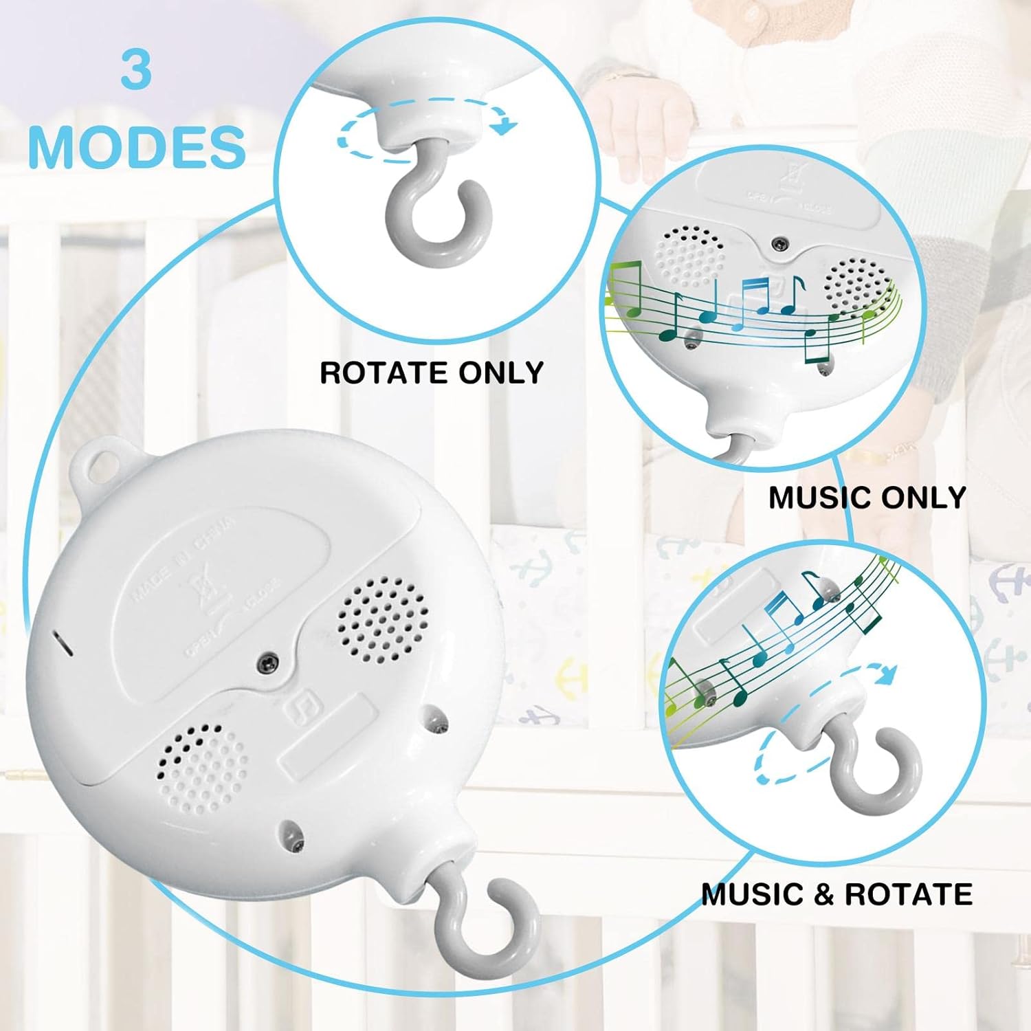 ➨Exercise Children’s Hearing: ➨Your baby can listen to different music randomly crib with the baby music box, which can train children’s hearing well and make them grow up happily.