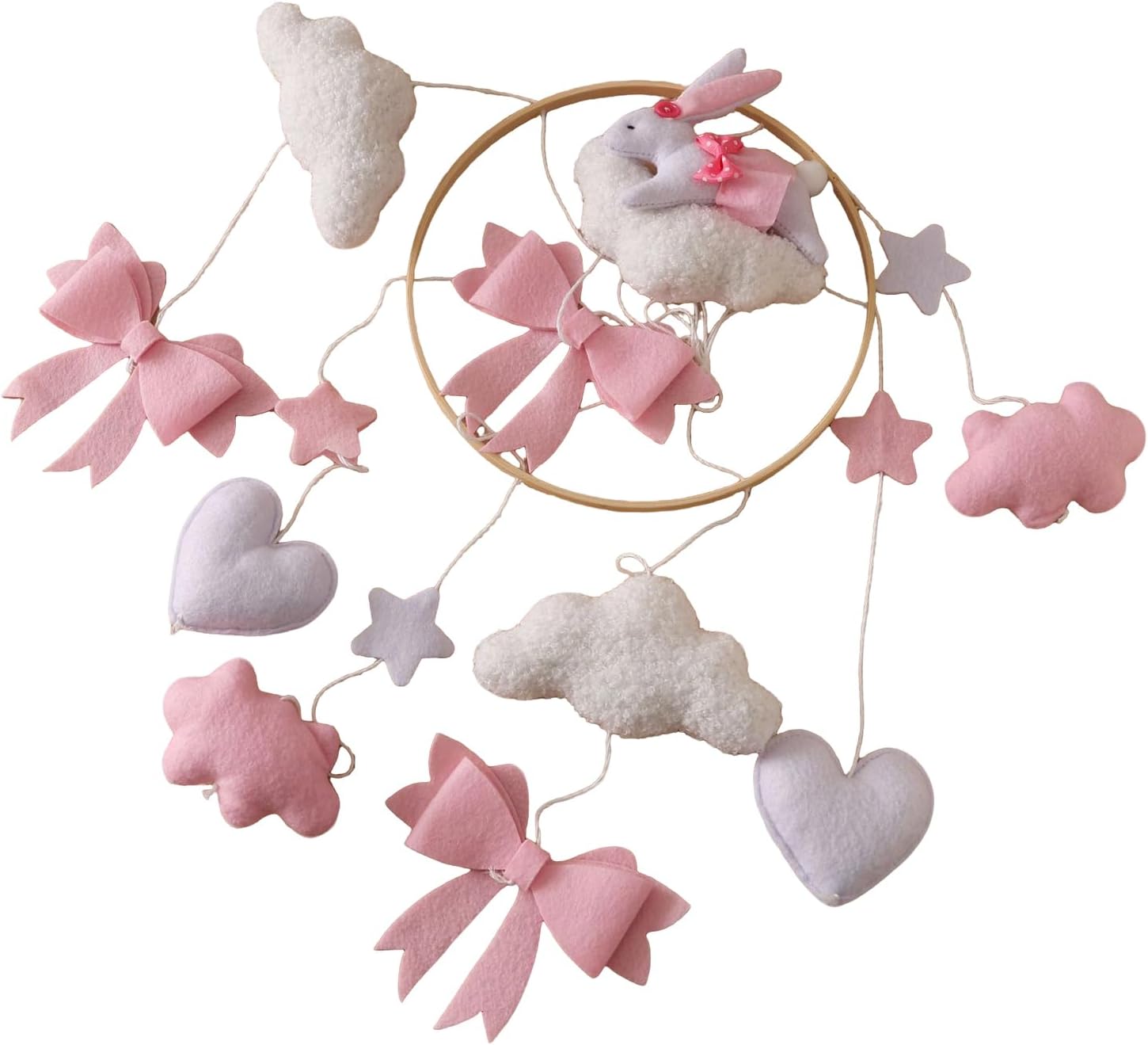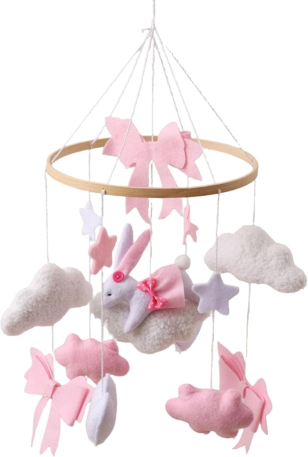 Baby Crib Mobile,Baby Nursery Mobile with Bunny and Bow | Boys Girls Rotating Sensory Toy Bohemian Ornament for Bedroom Bassinet Window Wall Living Room