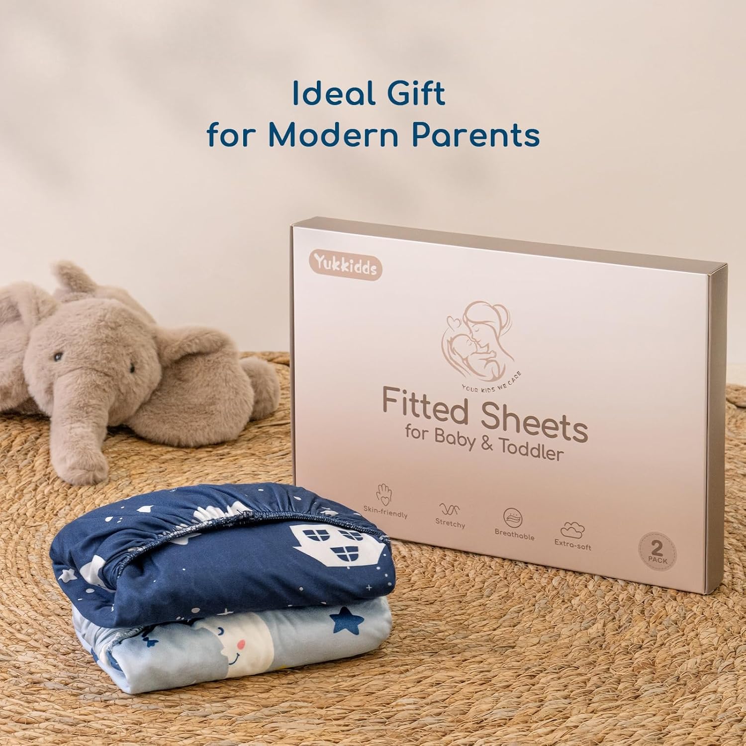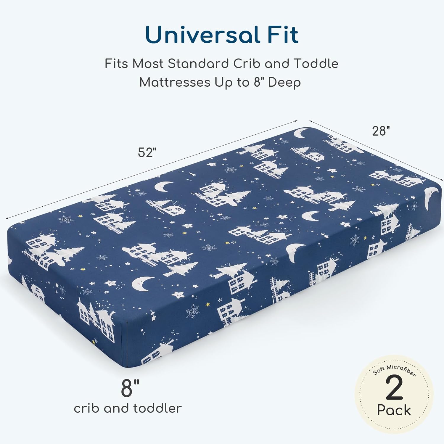 Baby Crib Sheets for Boys Girls Fitted Toddler Bed Sheets for Standard Crib and Toddler Mattress 52”x28” Ultra Soft and Breathable 2 Pack Dark Blue