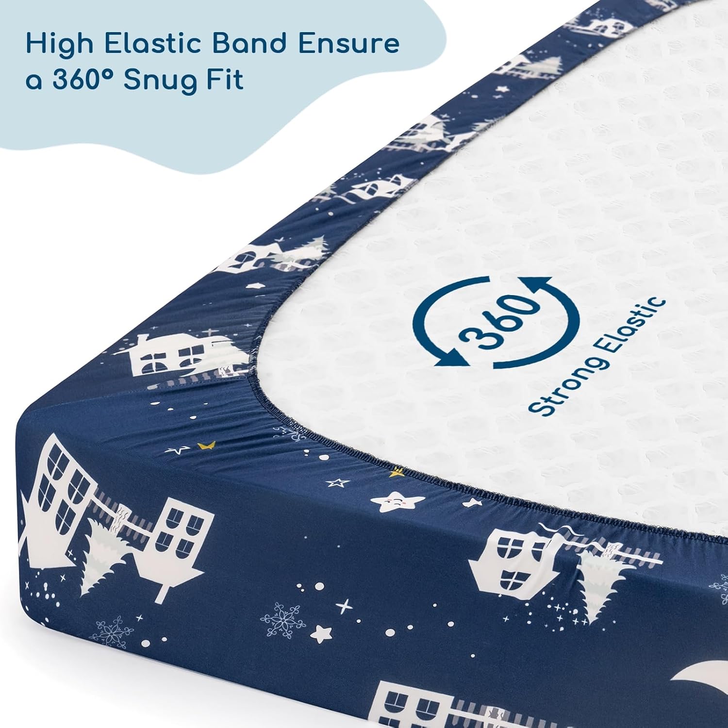 【Snug 52”x28”Fit & 8” Deep Pockets】Engineered for standard crib mattresses with 360° elastic bands—stays flat, zero slippage. No more midnight sheet adjustments for safer baby sleep.
