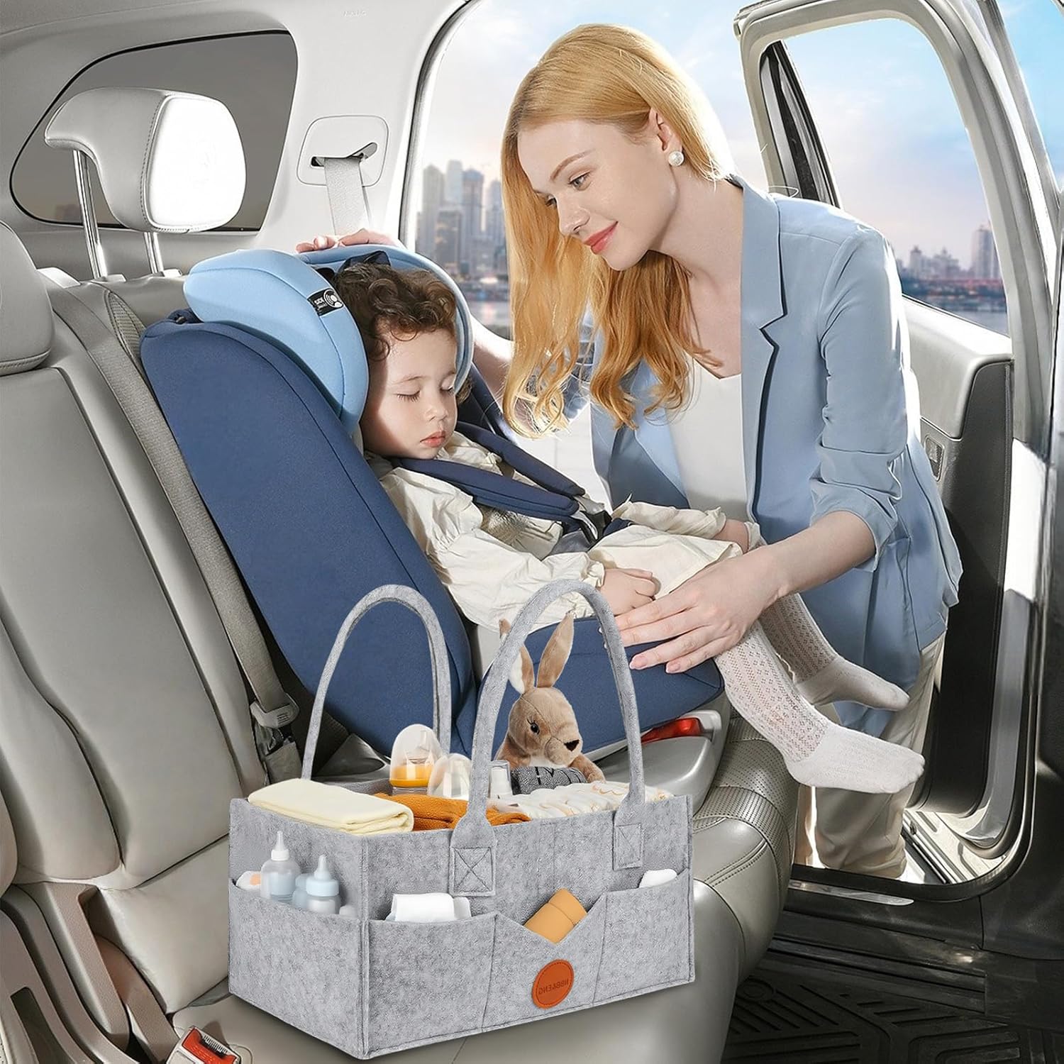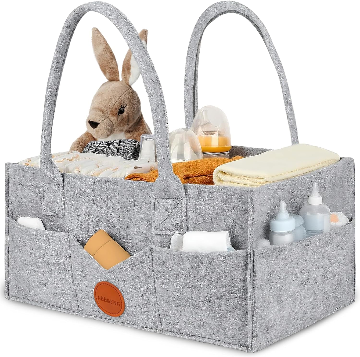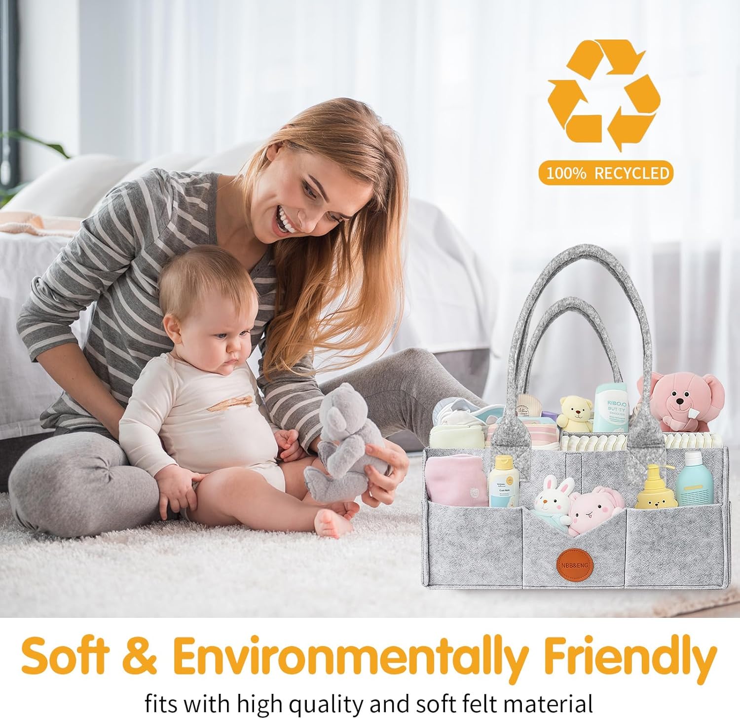 Good Baby Shower Gifts: The felt baby caddy organiser tote is not only practical, also looks fashionable on changing table, and the style & color works great for boys and girls.Portable and practical nappy caddy basket fit for different baby stages.