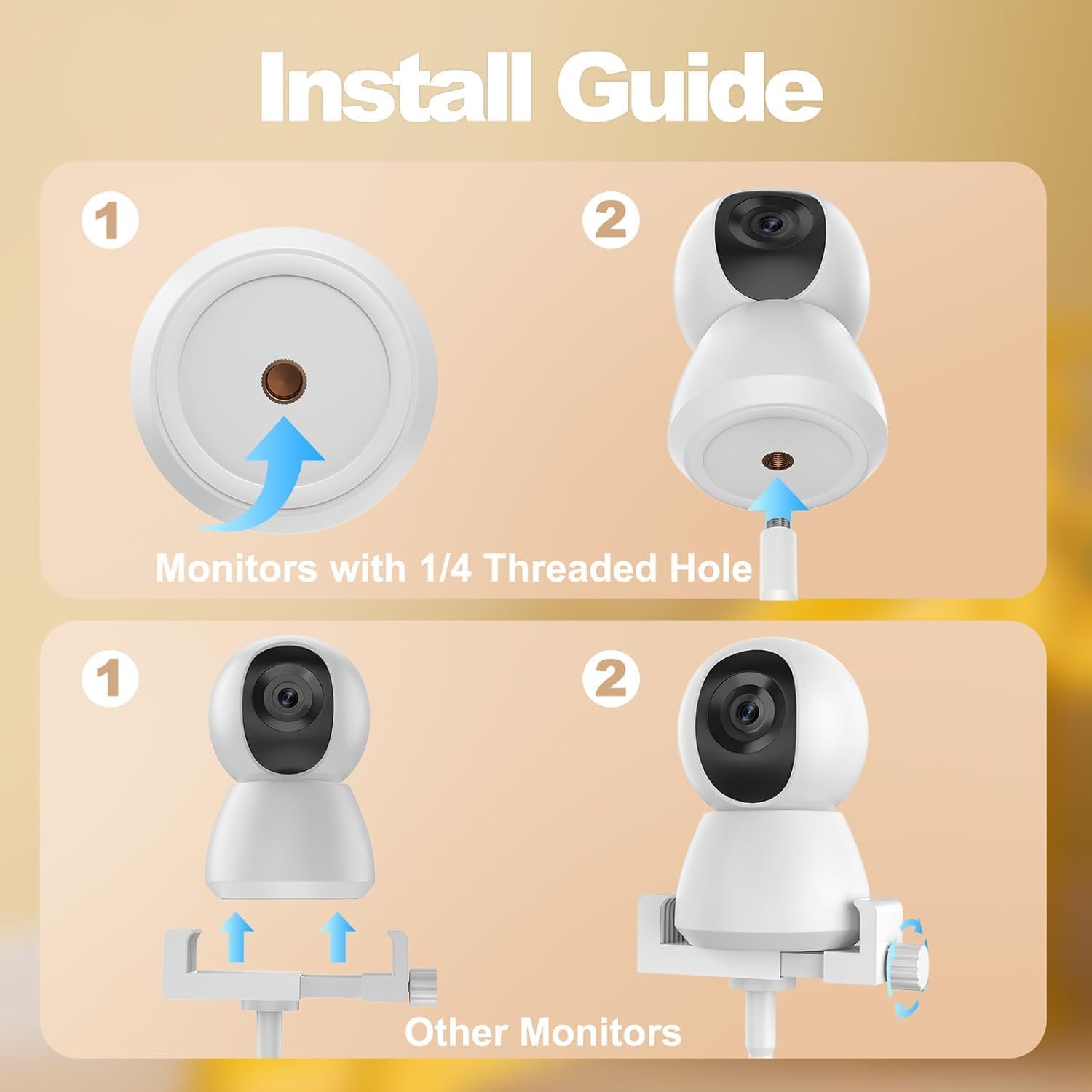 [Easy to Install]: No drilling required. This baby camera holder can be installed without additional tools, you can simply attach the stand to the bassinet and remove it easily. Two mounting options: 1. No need for the telescopic converter, mount the baby camera directly to the 1/4 screw bracket. 2. If the base of the baby monitor is not 1/4 screw, mount the telescopic converter to the camera holder first, then put the baby monitor in place.