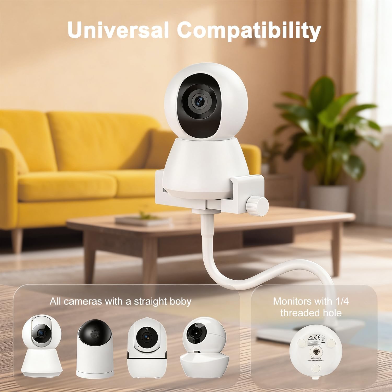 [Universal Compatibility]: This baby monitor holder features a standard 1/4” threaded connection and tripod mount, supporting cameras with straight bodies and flat bases (2.2″-4″ wide), as well as those with 1/4″ screw bases. It is compatible with popular models like Nanit Pro, Hellobaby, and Infant Optics DXR-8 series. Should you have any compatibility questions, please feel free to contact us for assistance.