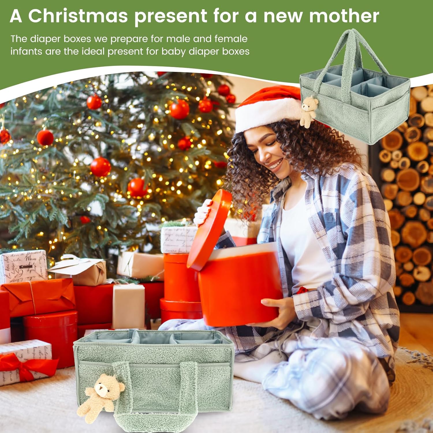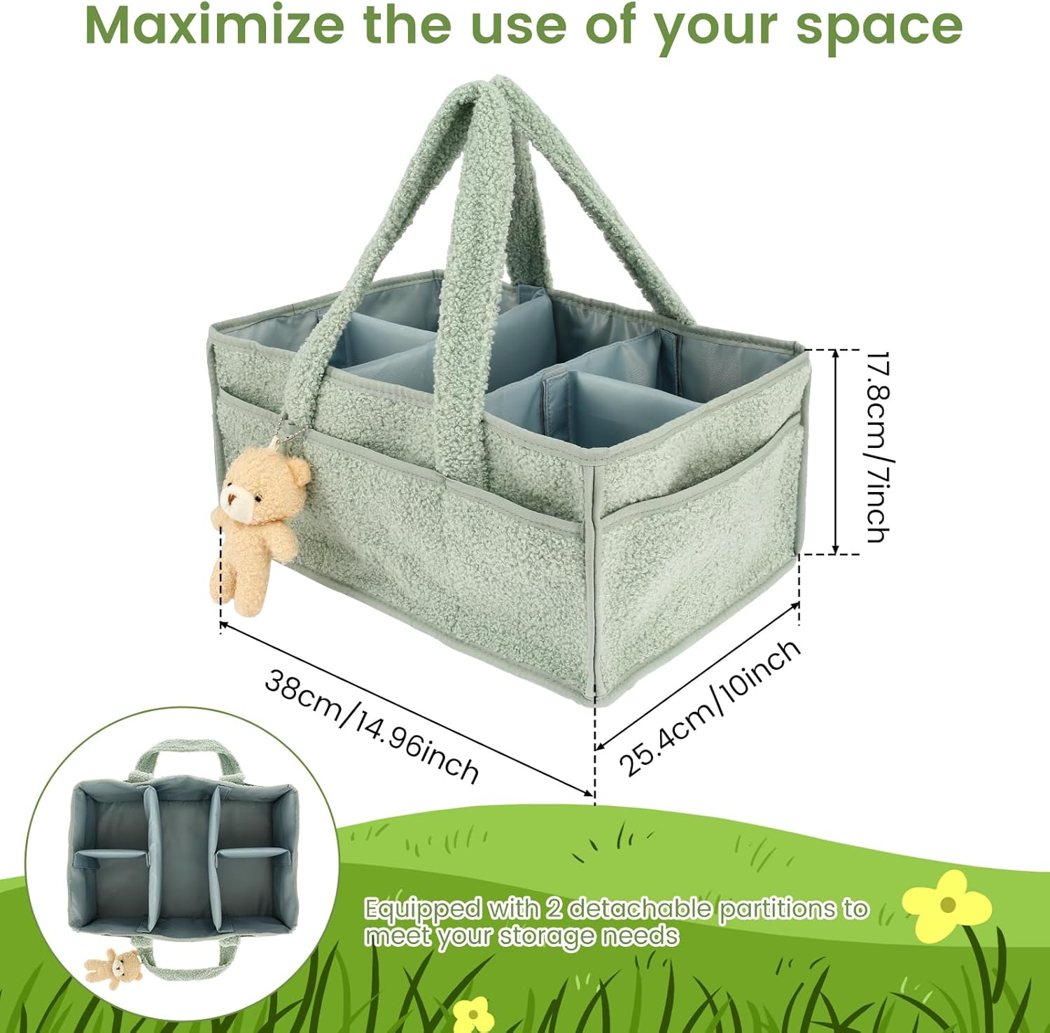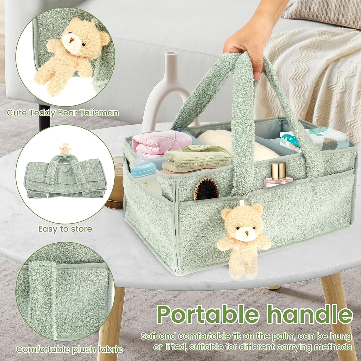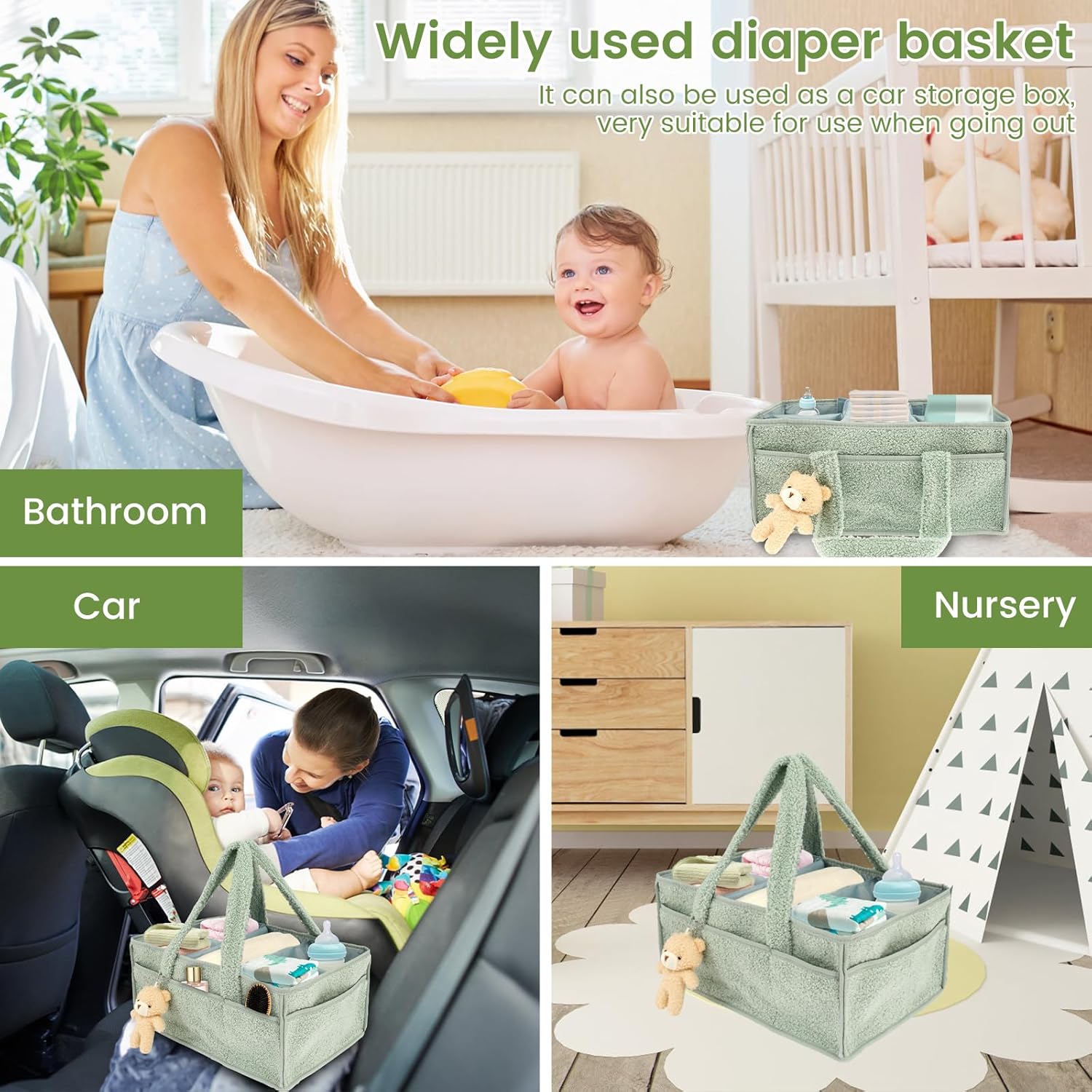 baby nappy caddy organizer for changing table, portable baby diaper caddy with removable dividers/handle, newborn essentials, nursery wipes storage bag, gift for mum, baby shower (green)Baby Nappy Caddy Organizer for Changing Table, Portable Baby Diaper Caddy with Removable Dividers/Handle, Newborn Essentials, Nursery Wipes Storage Bag, Gift for Mum, Baby Shower (Green)