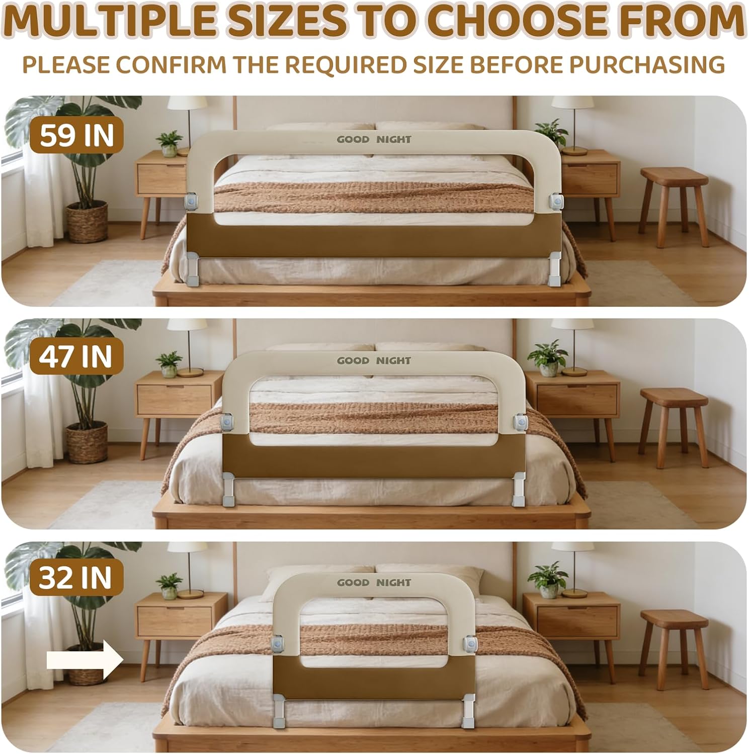 【Universal for Most Beds】Deeteck new upgraded bed guard rails are available in two sizes-32 inches and 59 inches. It has a 12-speed free lift at the bottom that can be adjusted from 2-12 inches to accommodate different mattress heights. If you need a bed rail for twin, double, queen, or king size beds, this would be a great choice! (Tip: Please measure the size of your mattress before purchasing)