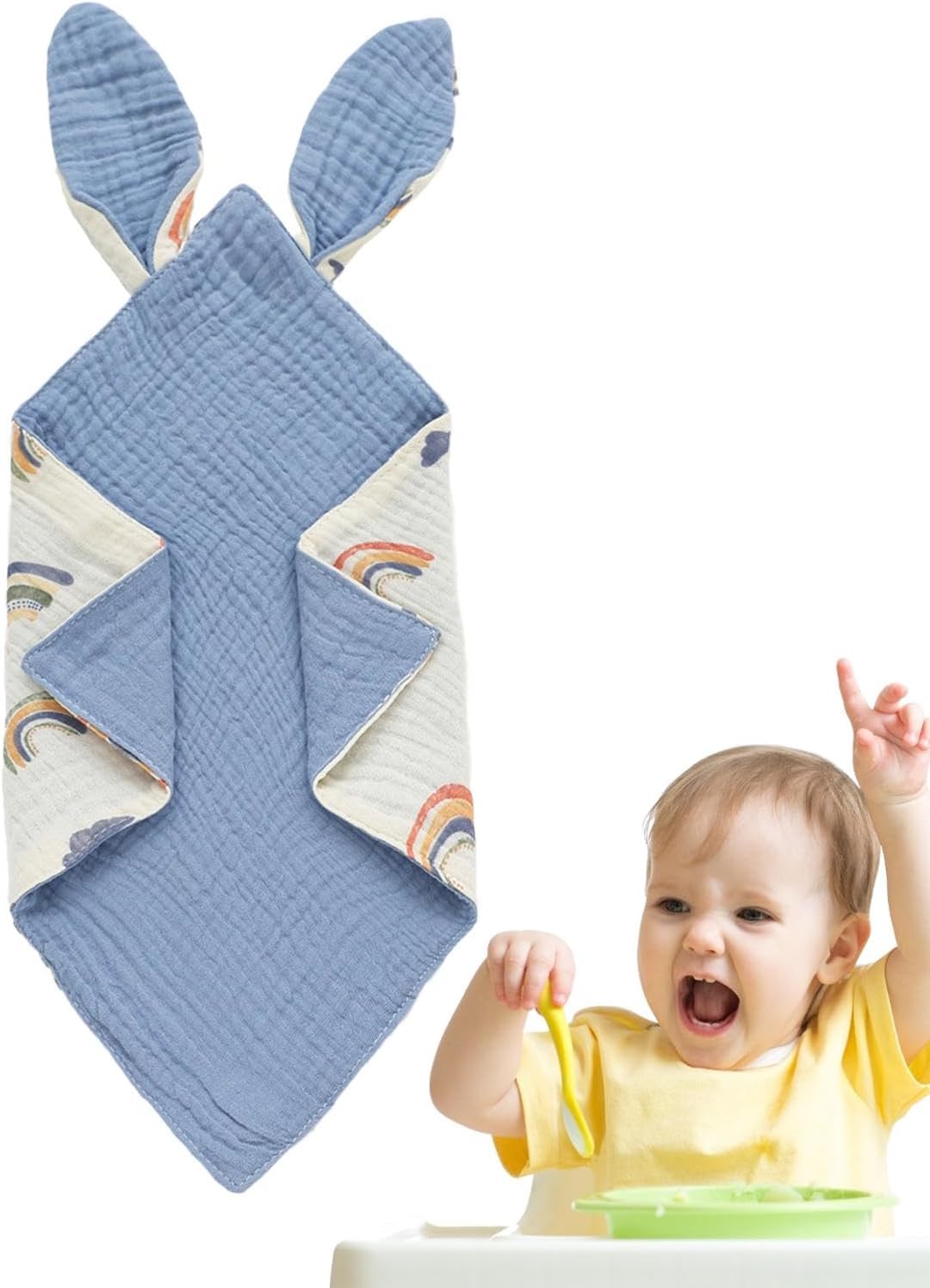 & Free ShippingMultiple occasions: this soothing towel with square rabbit ears, which provides a sense of security for your baby, meets your baby’s needs in different scenarios such as a burp towel