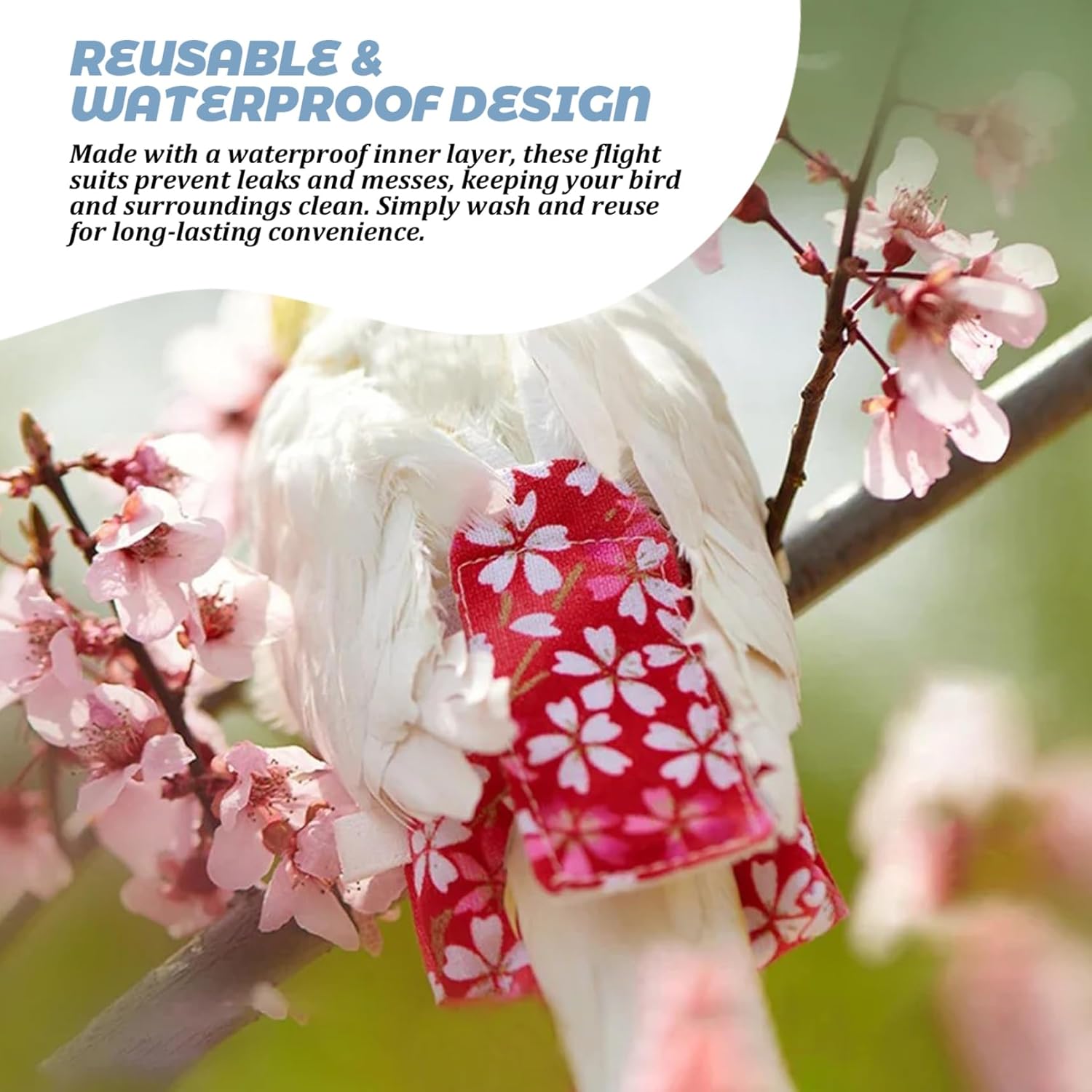 Reusable & Waterproof Design: Made with a waterproof inner layer, these flight suits prevent leaks and messes, keeping your bird and surroundings clean. Simply wash and reuse for long-lasting convenience.