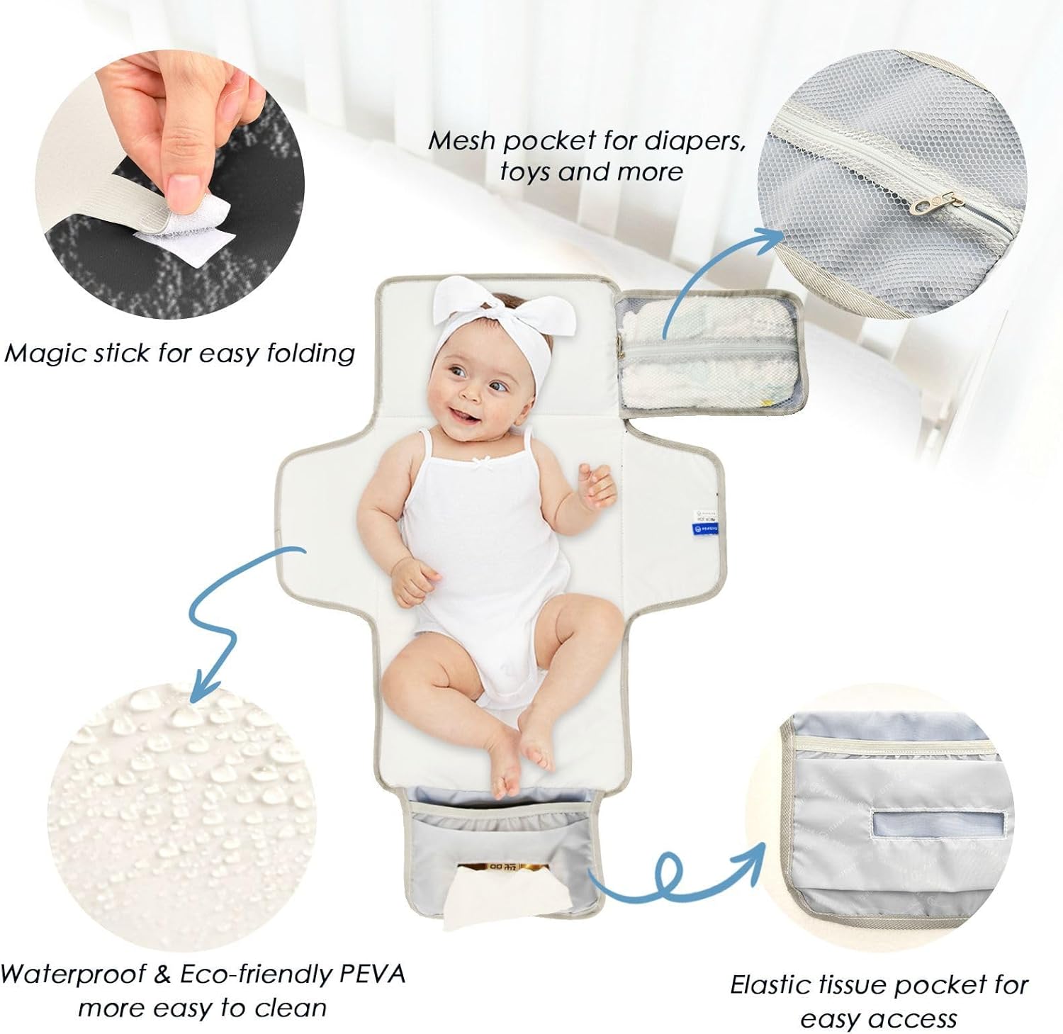 & Free ShippingDiaper Change Anytime, Anywhere – Our baby changing mat with a built-in pillow is your ultimate partner. Whether inside or outside, this diaper changing mat lets you change your baby’s diaper on any flat surface!