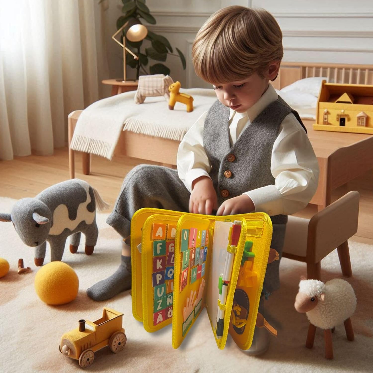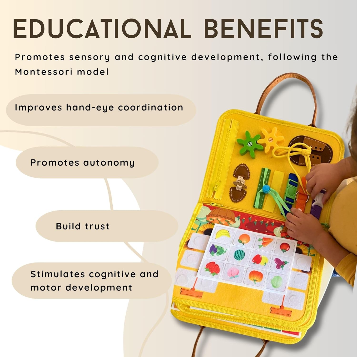 Busy Board Montessori for toddlers. Activity Board, Sensory Learning Case for Fine Motor Skills, Travel Educational Toy. For Girls and Boys. 2,3,4,5 years old. With Whiteboard. Birthday gift