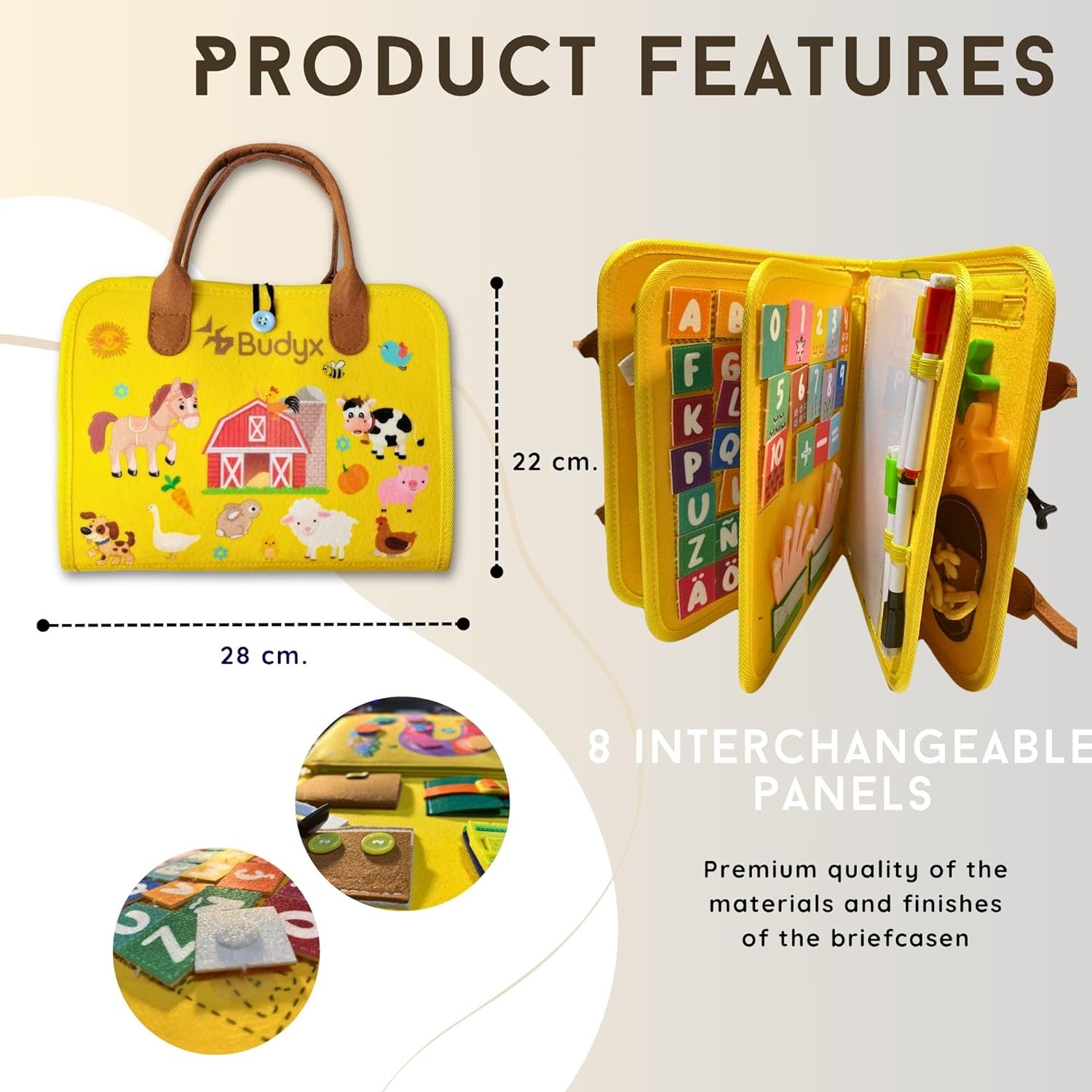PORTABLE AND PRACTICAL: It has carry handles that make it a portable sensory briefcase, ideal for taking it anywhere (e.g. trips by car, train, plane, bus, etc.), and keep the boy or girl entertained while learning. Copnbecoming an ideal travel toy.
