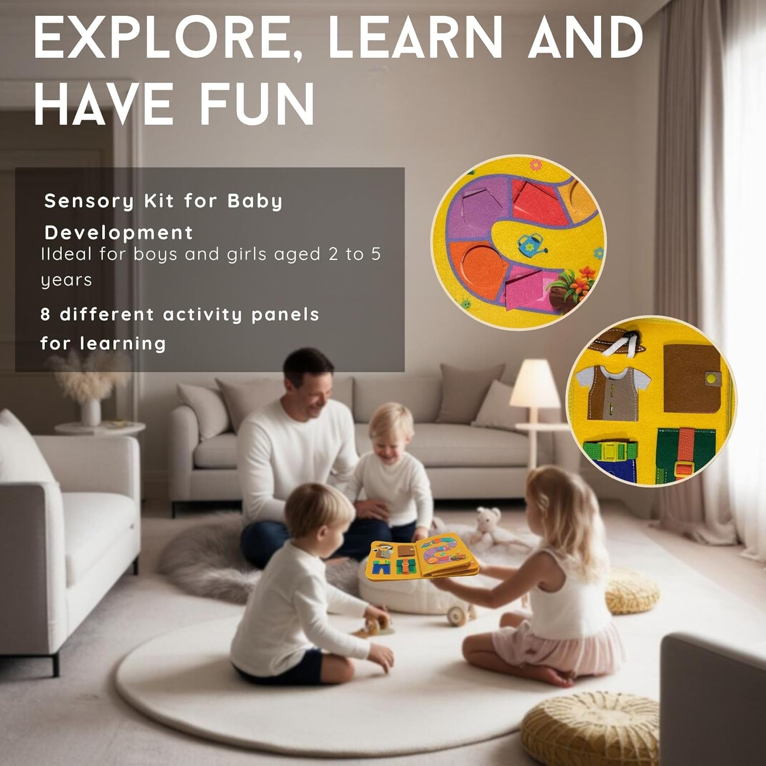 MULTIPLE ACTIVITIES, LEARN PLAYING: Offers 8 sensory panels with variety of manual activities such as zippers, buttons, lanyards and moving parts to keep kids entertained and learning. and developing cogmitive skills and abilities, especially stimulating fine motor skills. The included board will also encourage creativity.
