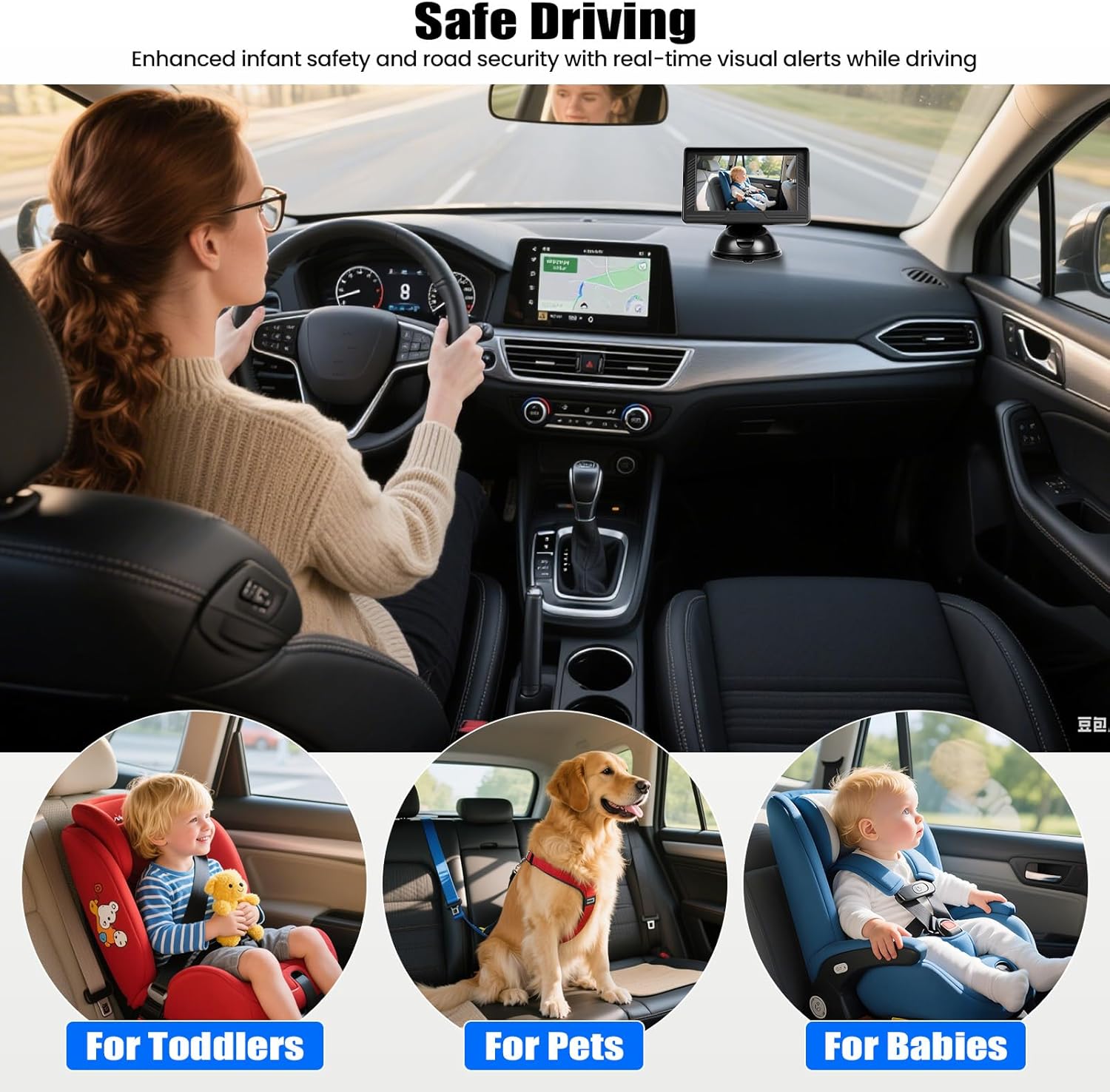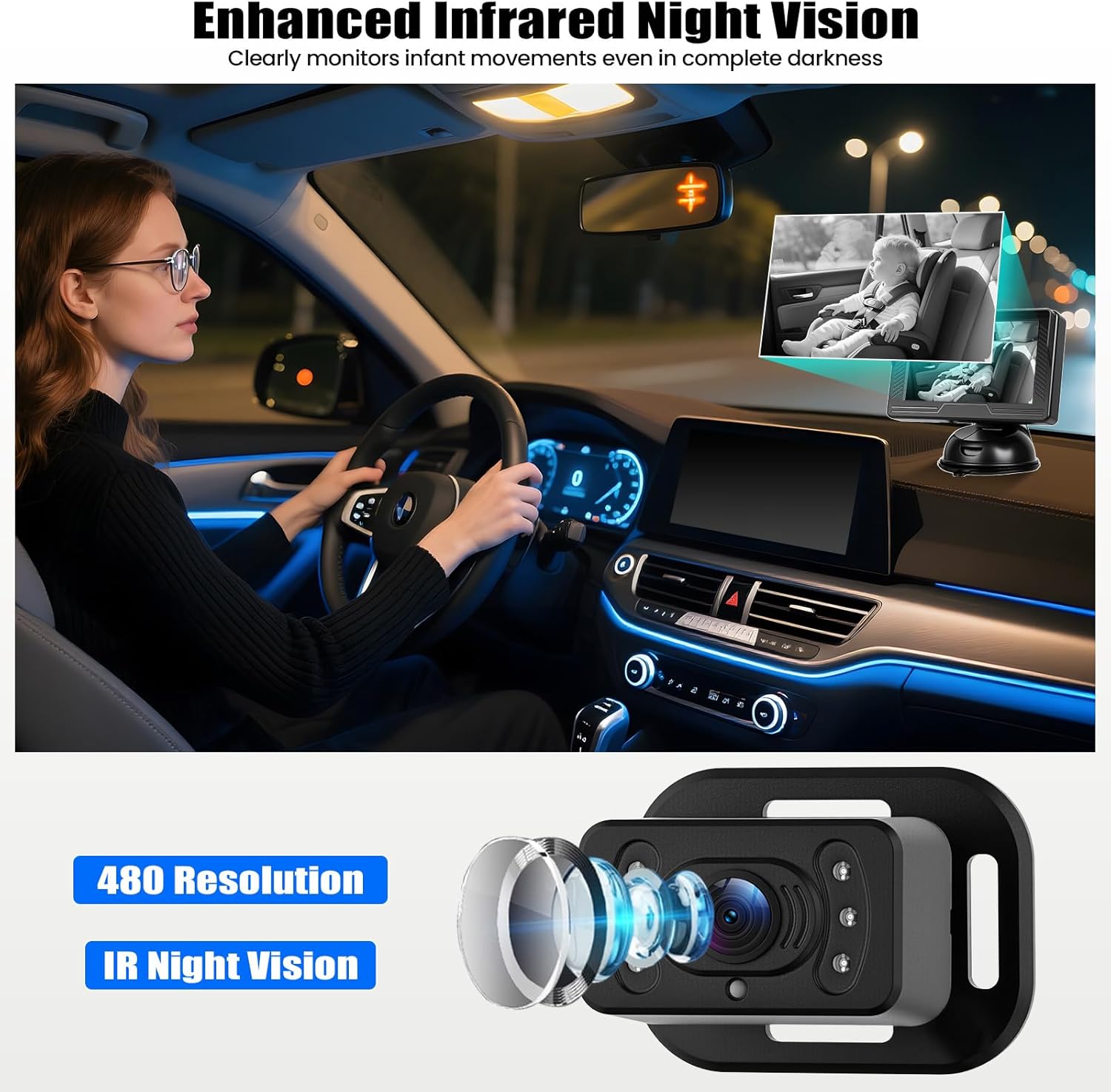 & Free ShippingHD 480P Real-time Surveillance: Crisp, live images of your baby in the back seat, for added safety and fewer distractions while driving. Ideal for long trips, the daily commute to daycare or quick errands: don’t miss a moment. The anti-glare IPS display delivers crystal clear images even in sunlight, so you can see your child at all times.