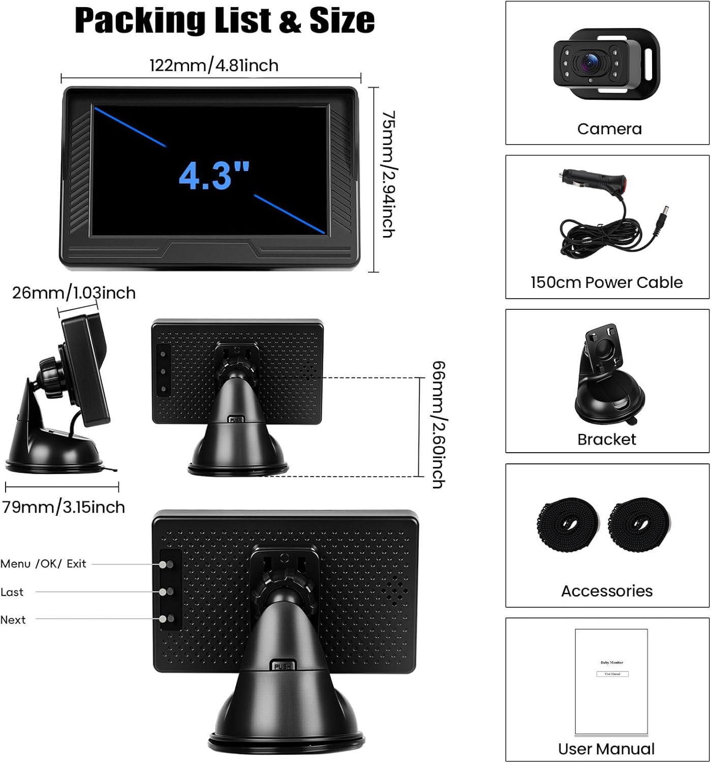 【4.3″ IPS Screen】4.3″ IPS screen displays vivid colors and offers better visibility than conventional baby mirrors. It is attached to the dashboard or window with a suction cup, and can be individually adjusted to get the best viewing angle. Reduce blind spots and avoid having to turn around, which increases driving safety.