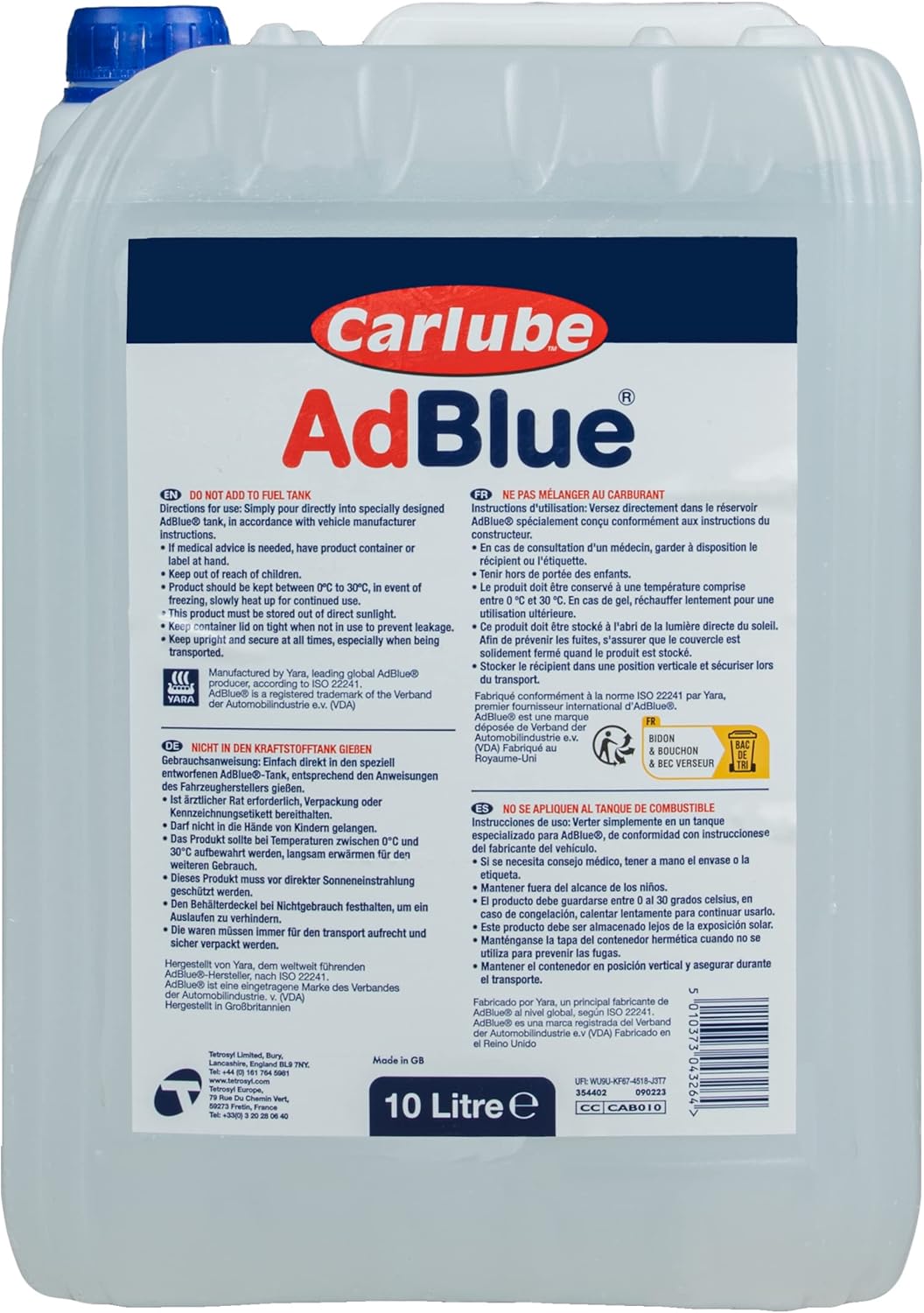 carlube adblue 10l premium urea solution with flex spout for diesel engines & scr exhaust gas aftertreatment iso 22241 compliant easy refillCarlube AdBlue 10L Premium Urea Solution – With Flex Spout – For Diesel Engines & SCR Exhaust Gas Aftertreatment – ISO 22241 Compliant – Easy Refill
