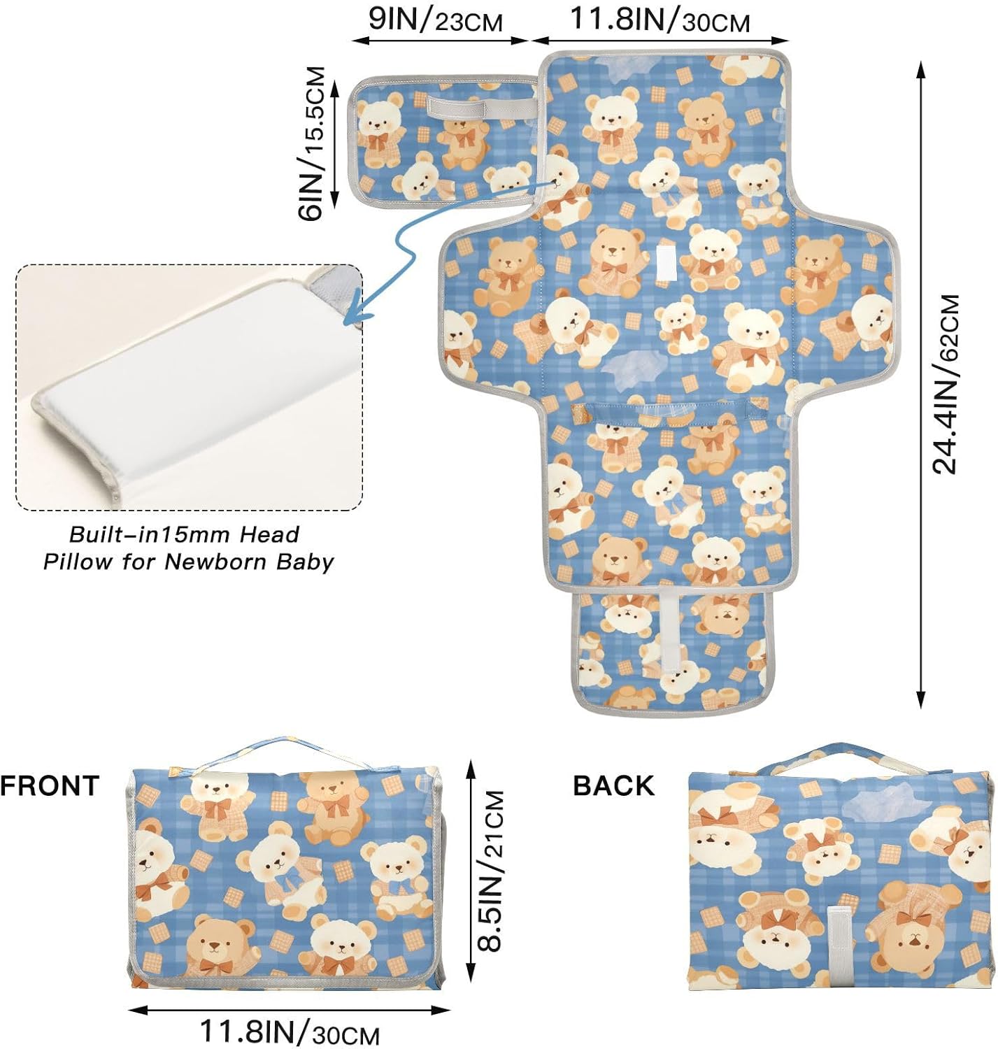 Cartoon Bears Cute Plaids Reusable Changing Pads for Baby with Tissue Pocket Diaper mat Changing pad Travel Infant Travel Station Kit cambiadores de pa?ales para Bebes
