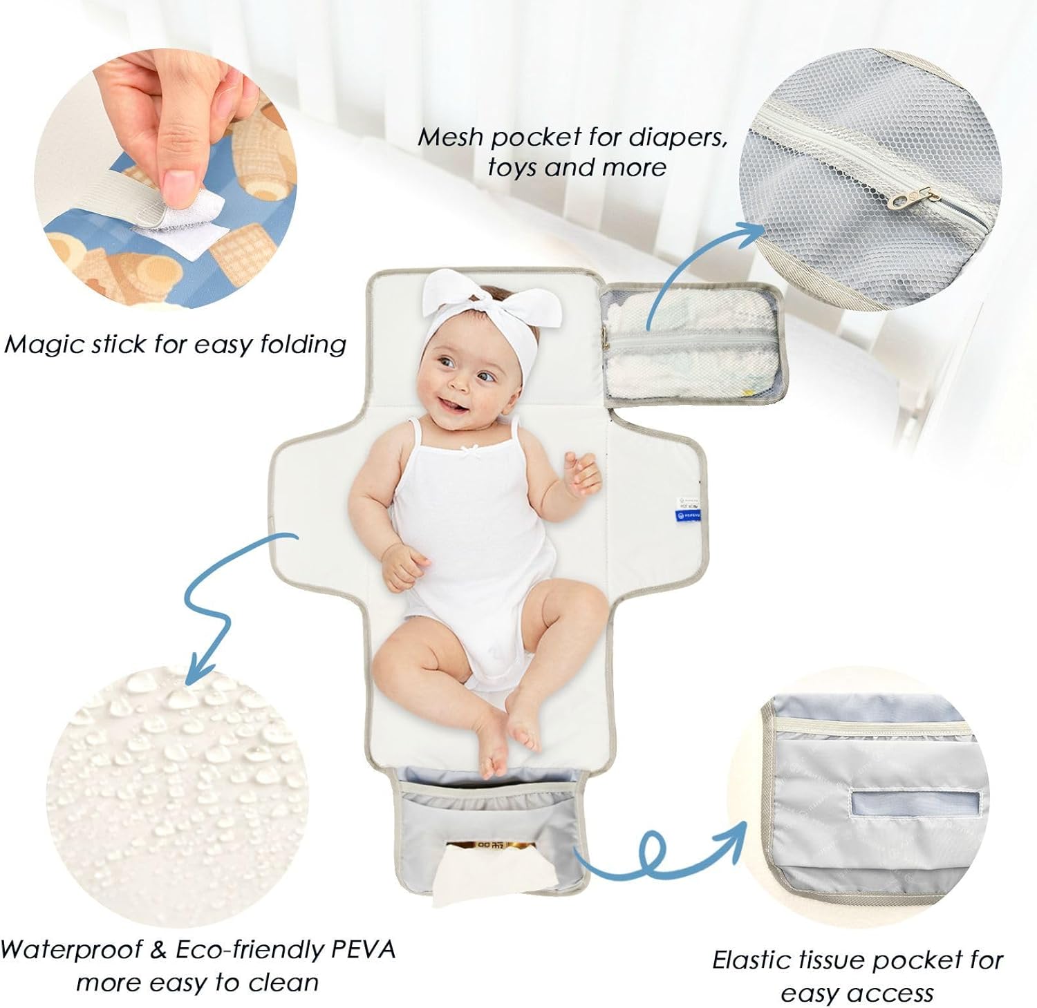 Convenient to Use- Attaches to strollers or diaper bags with the snap-loop handle. The foldable baby changing pads compacts to 11.8×8.5 inches – as lightweight as standard mats and effortlessly fits in wet bags for compact travel.