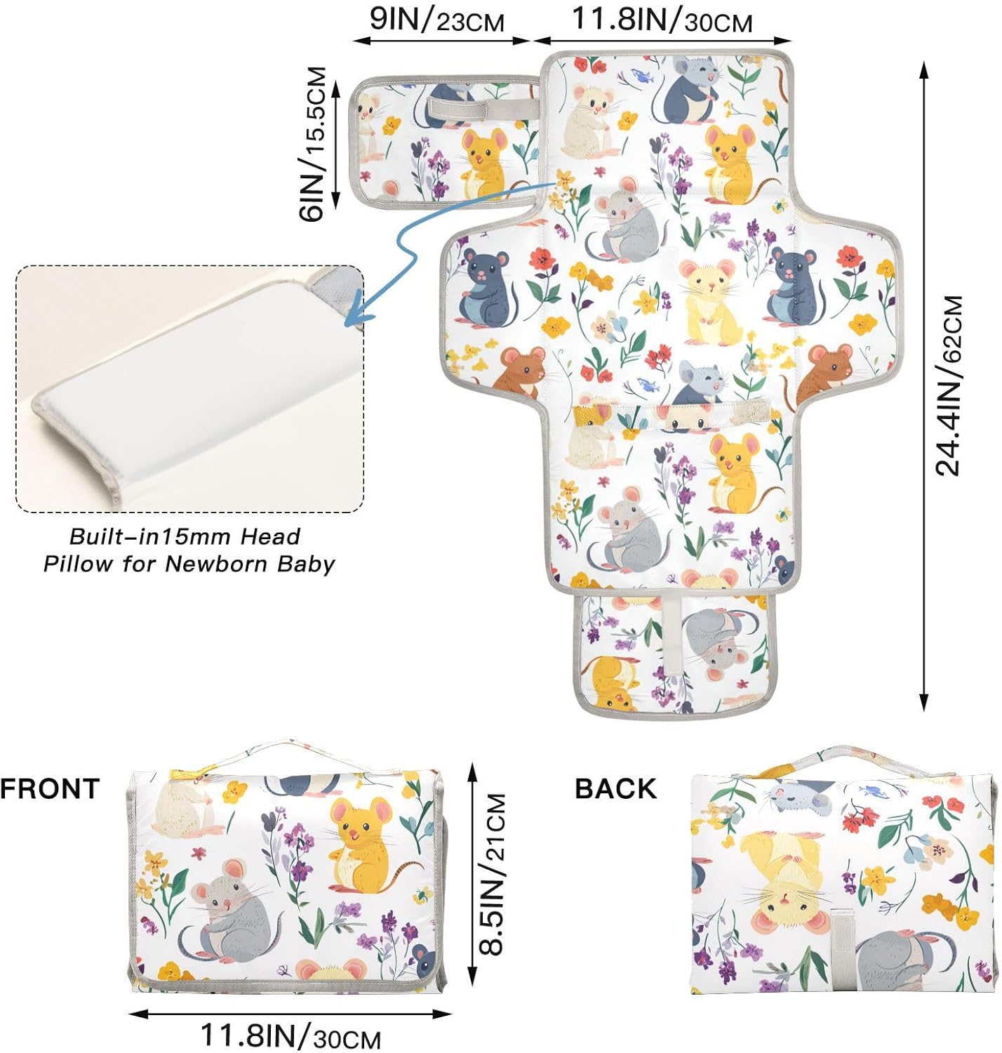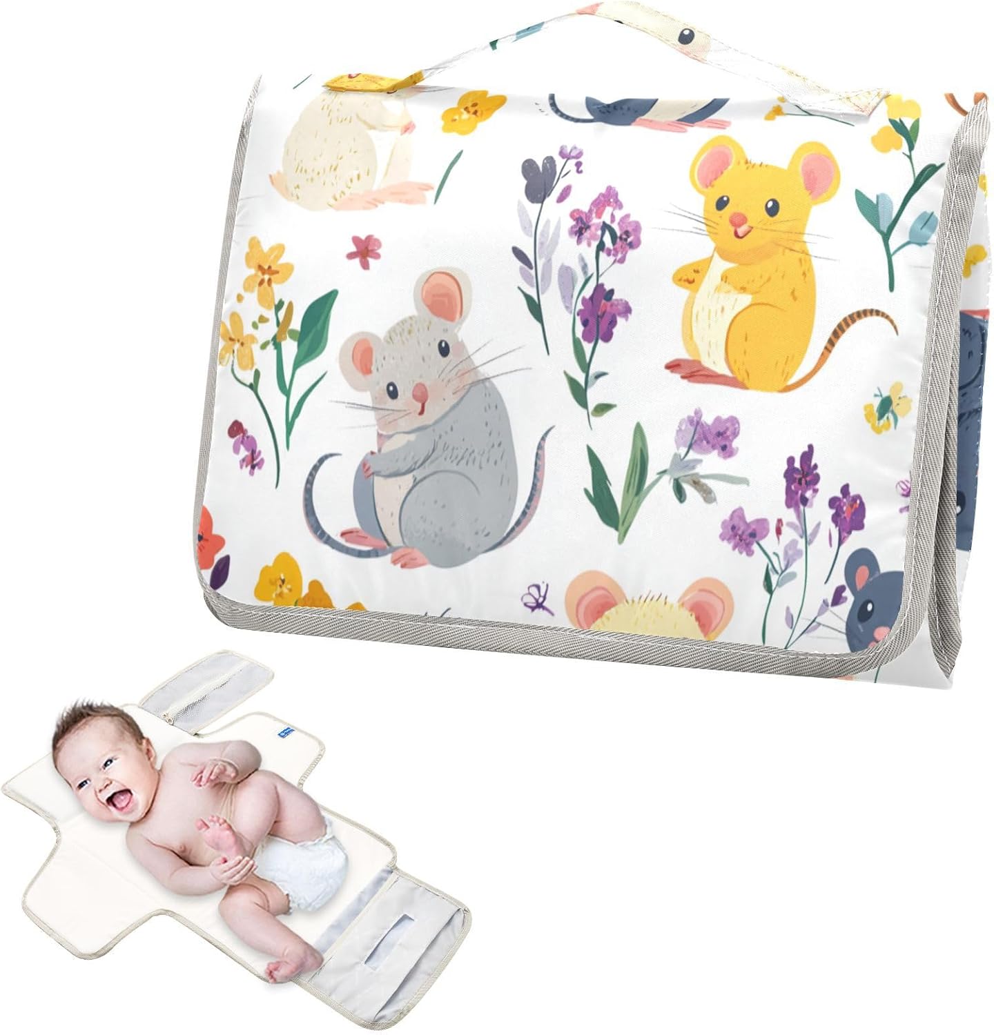Cartoon Cute and Colorful Mice Reusable Diaper Changing pad with Tissue Pocket Travel Changing pad for Baby Infant Travel Station Kit cambiador de pa?ales para Bebes