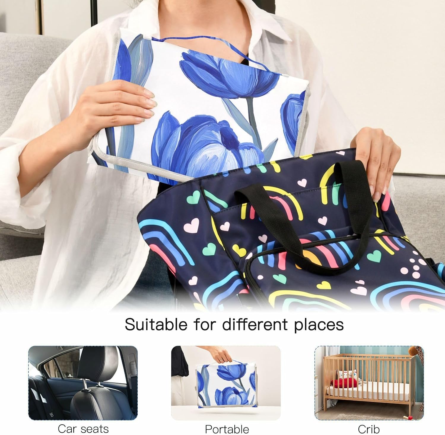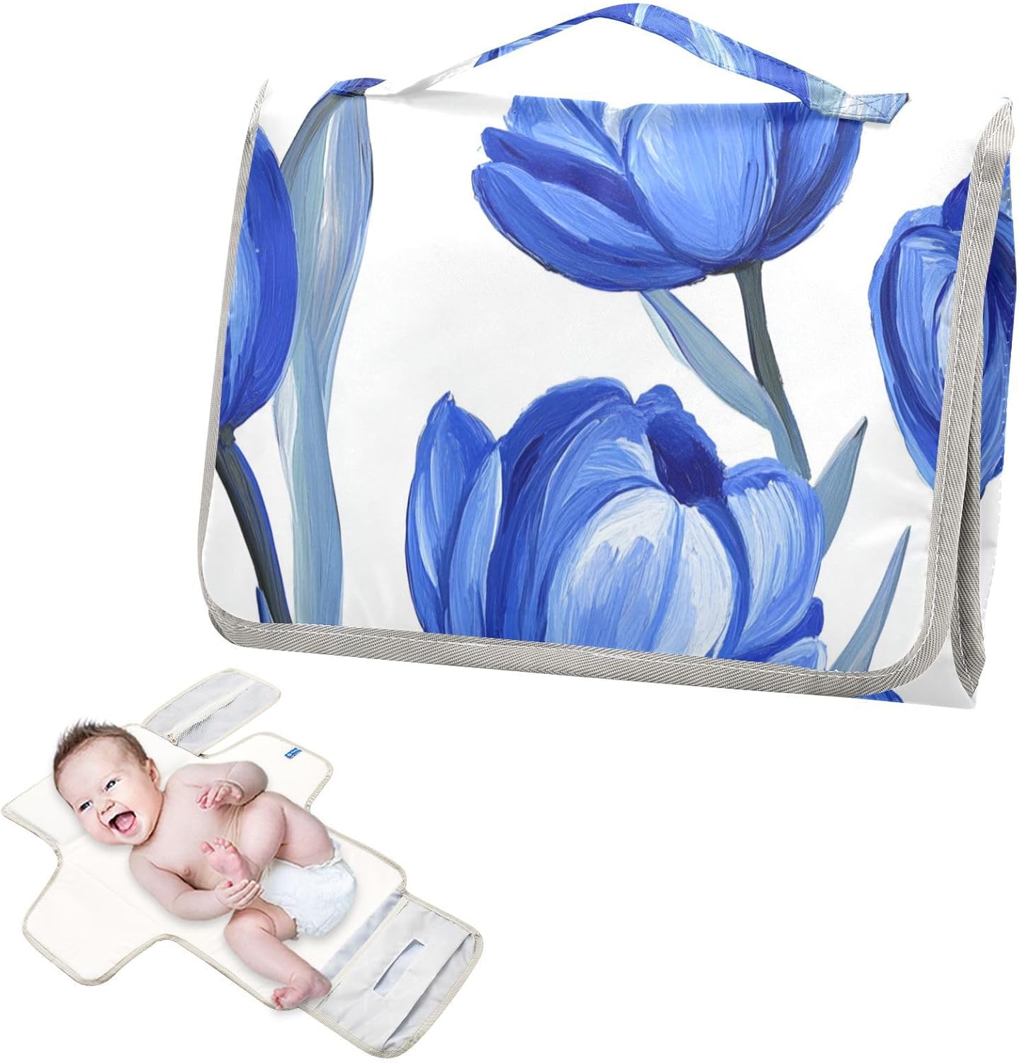 Changing Mat with White Background Oil Painting Style Reusable Portable with Tissue Bag Portable Baby Changing Mat Travel Station Kit Cambiador de pa?ales para Bebes