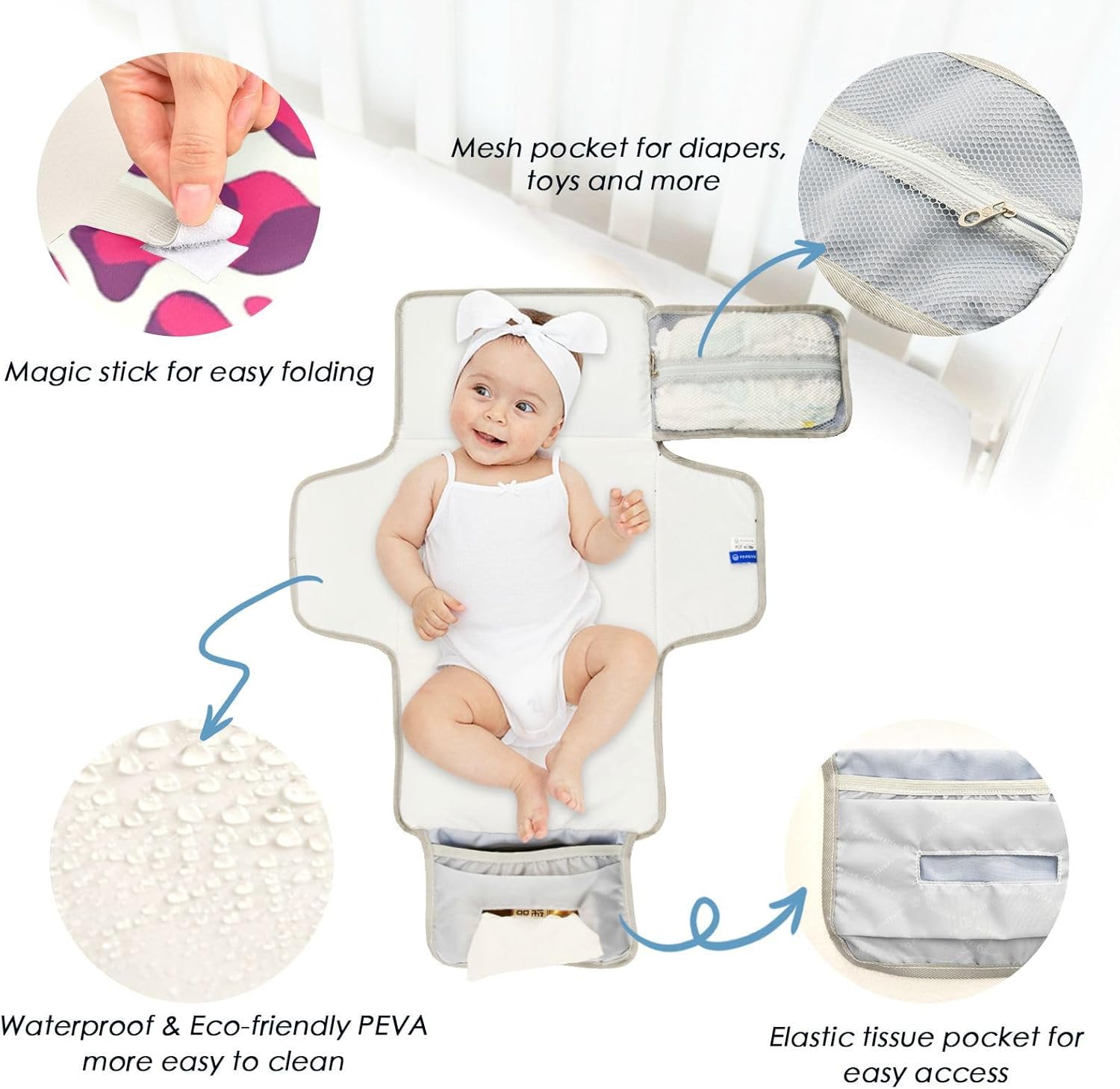 & Free ShippingDiaper Change Anytime, Anywhere – Our changing pad portable with a built-in pillow is your ultimate partner. Whether inside or outside, this diaper changing mat lets you change your baby’s diaper on any flat surface!