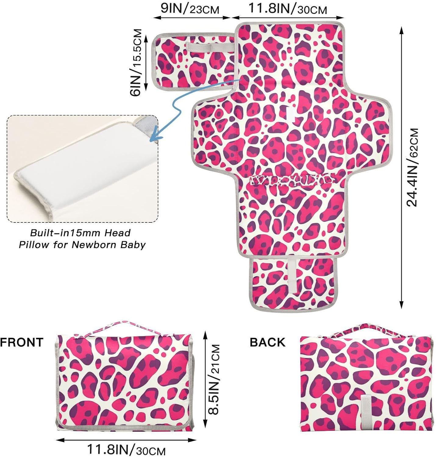 Diaper Change Anytime, Anywhere – Our changing pad portable with a built-in pillow is your ultimate partner. Whether inside or outside, this diaper changing mat lets you change your baby’s diaper on any flat surface!