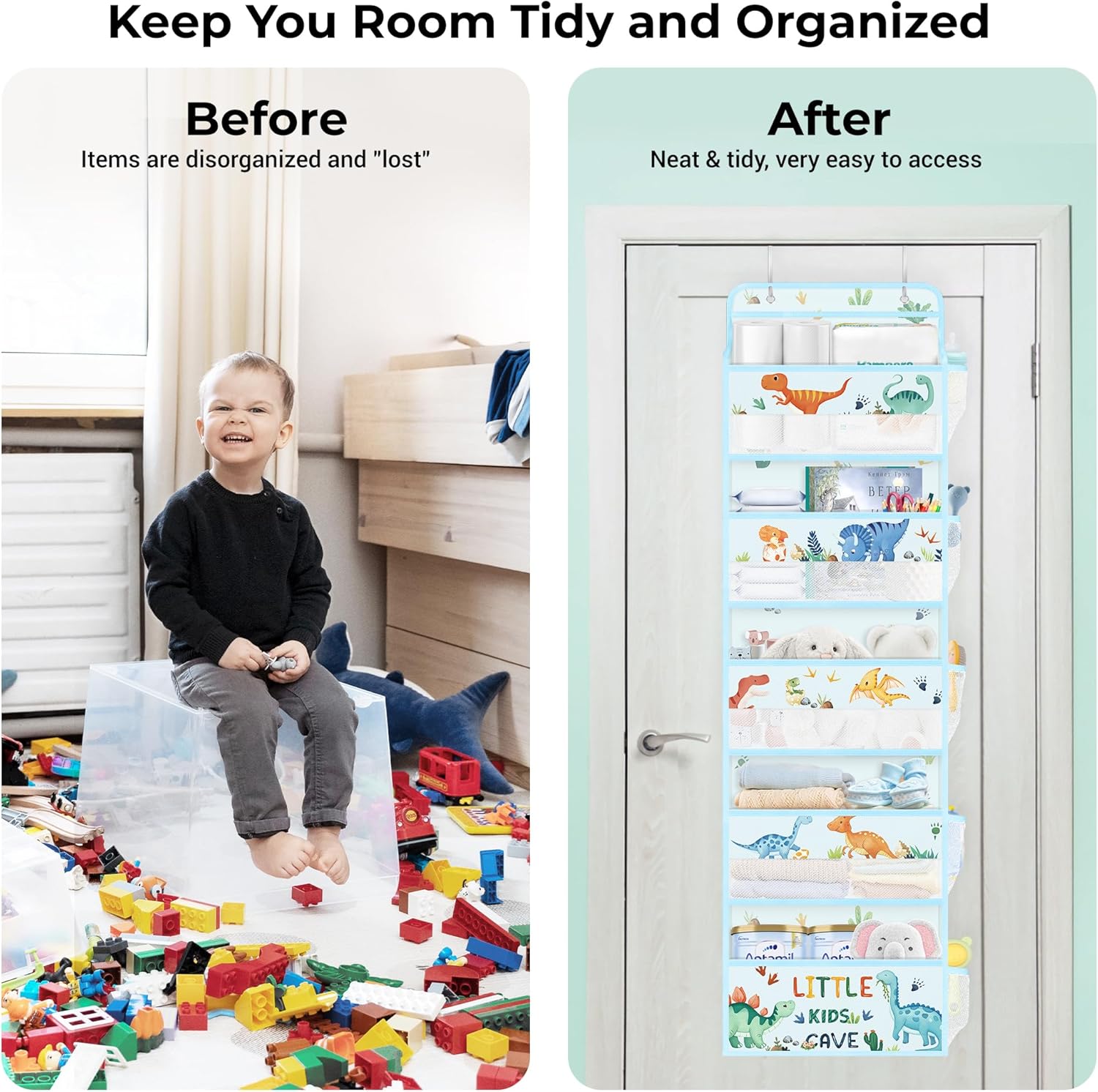 Enhanced Storage Space— The door hanging storage maximise your under-utilised space behind the door for bedroom/bathroom/nursery room/caravans and so on. Design with dinosaur world, make it more interesting