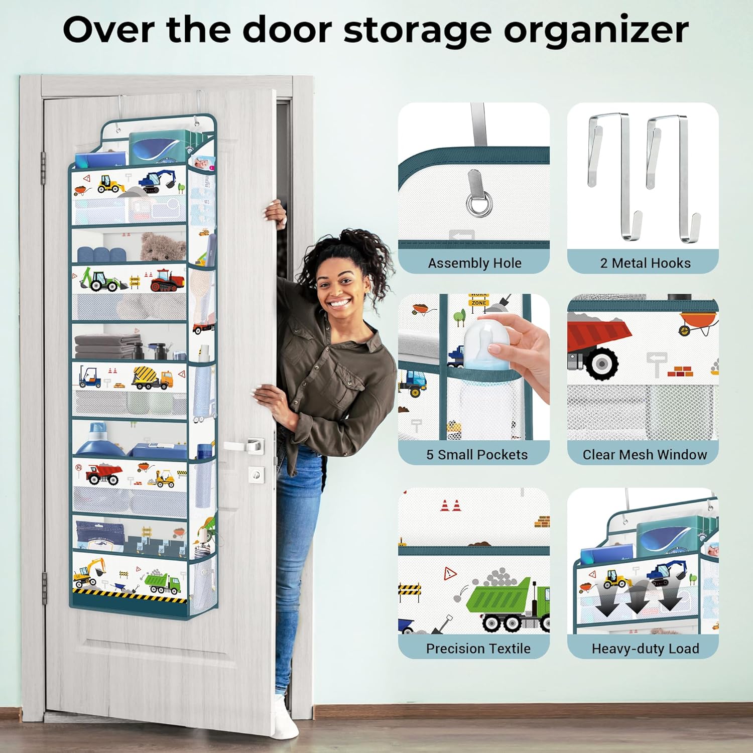 & Free ShippingEnhanced Storage Space— The door hanging storage maximise your under-utilised space behind the door for bedroom/bathroom/nursery room/caravans and so on. Design with construction vehicle, make it more interesting