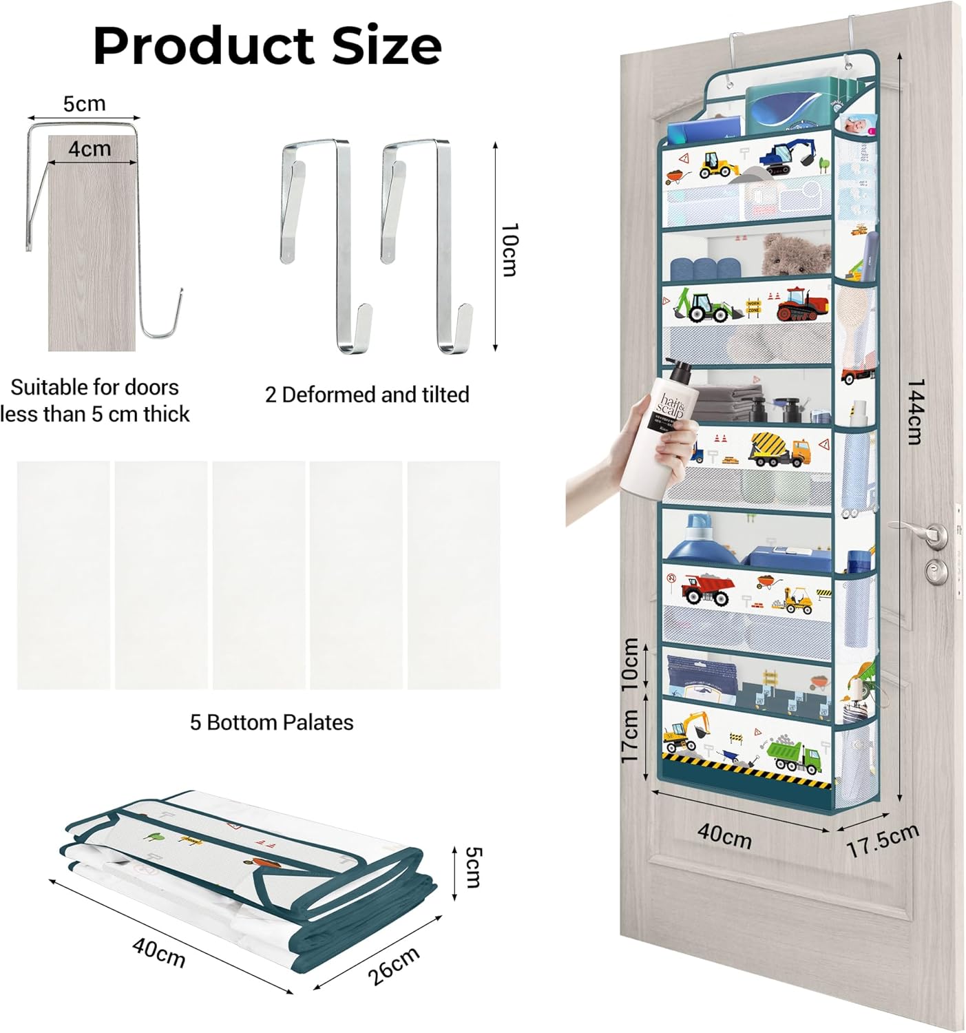 Enhanced Storage Space— The door hanging storage maximise your under-utilised space behind the door for bedroom/bathroom/nursery room/caravans and so on. Design with construction vehicle, make it more interesting
