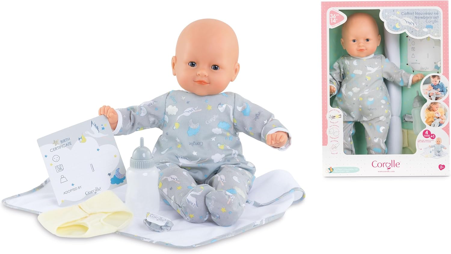 Corolle – Newborn Baby Set, Includes 36 cm Soft Body Doll, Bottle, Cloth Diaper, Blanket, ID Bracelet and Birth Certificate, Suitable from 2 Years