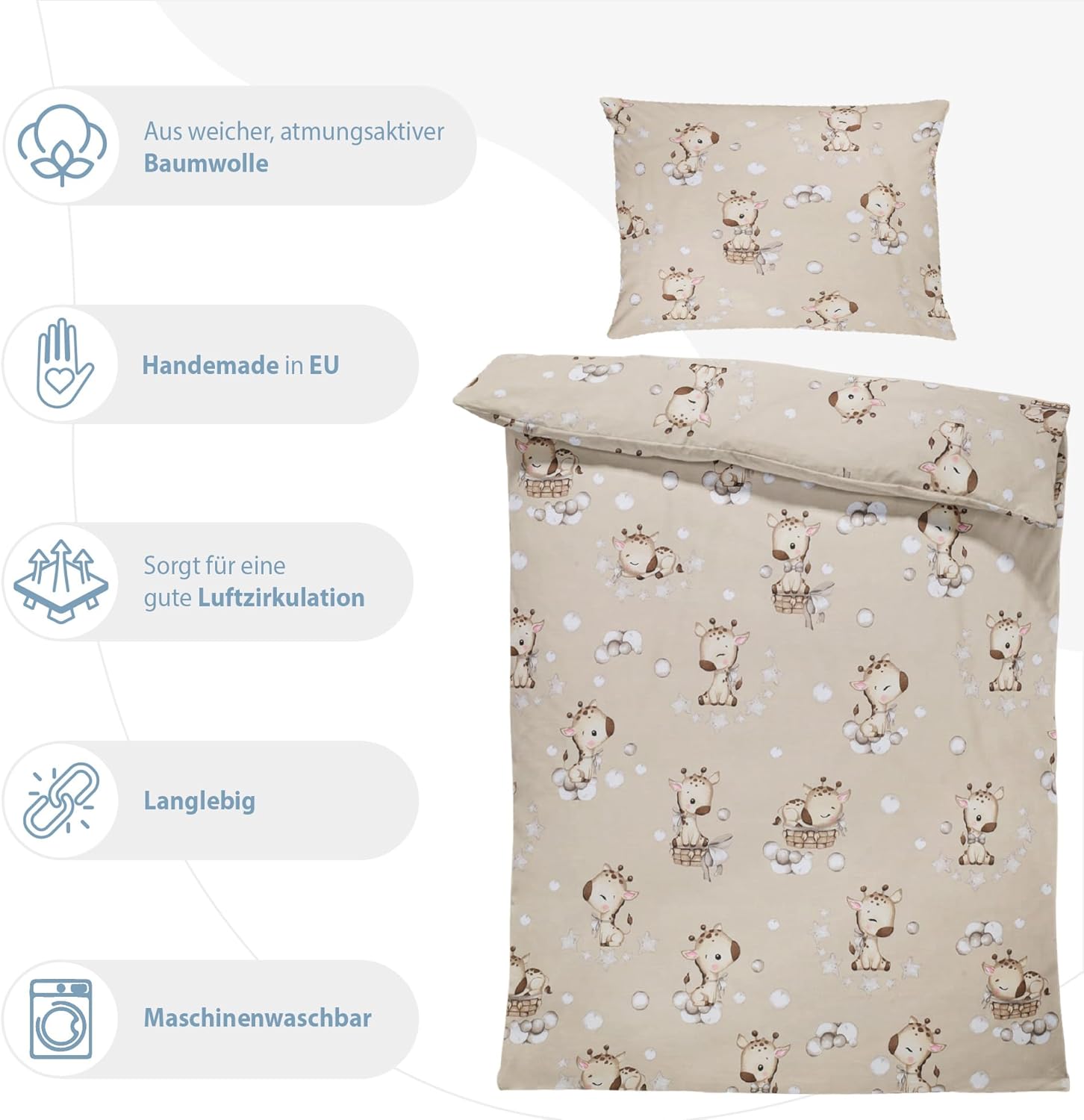 🧼【EASY CARE & PRACTICAL】 – Baby bedding is washable at 30°C, quick-drying, and colorfast. Toddler bedding is ideal for daily use and easy to clean.