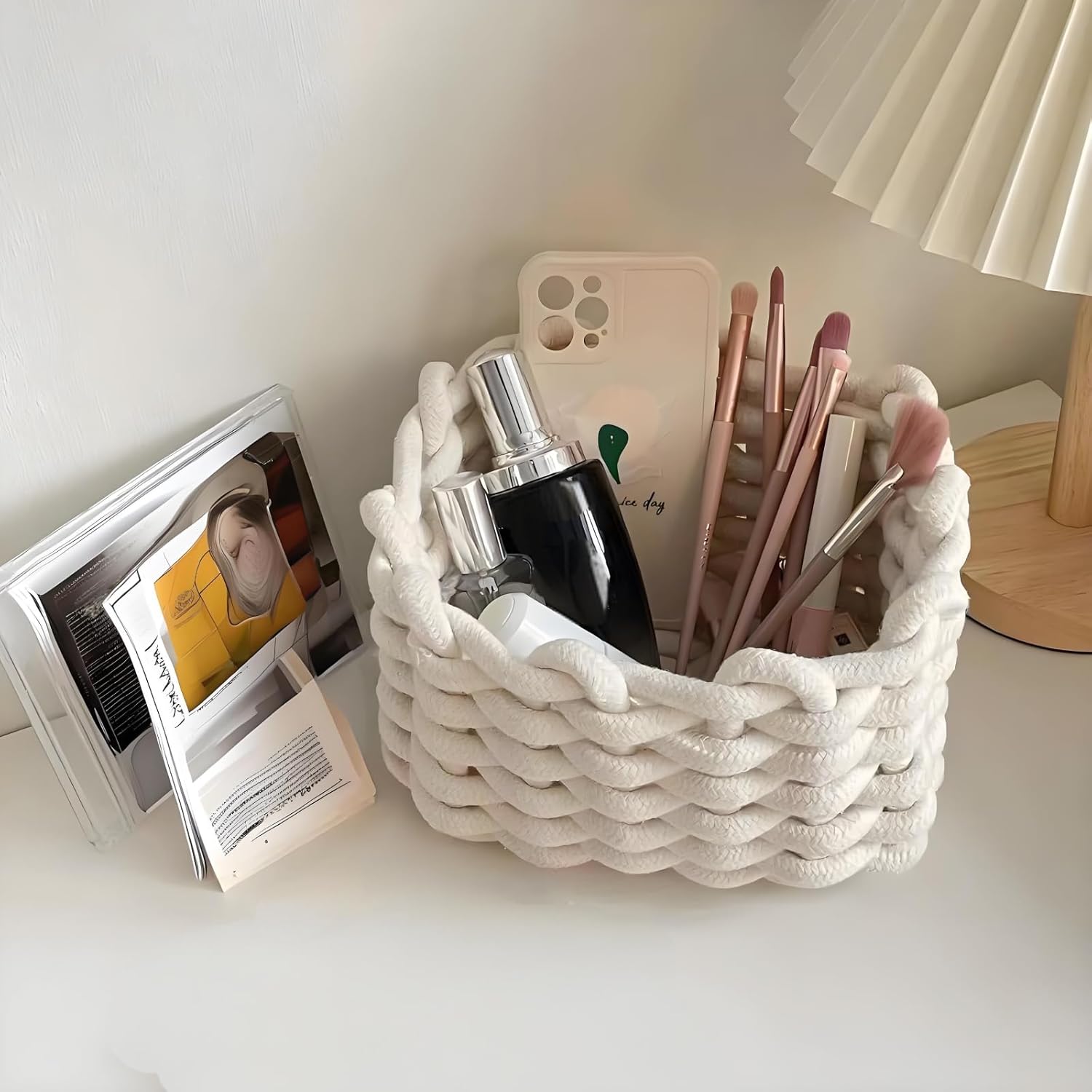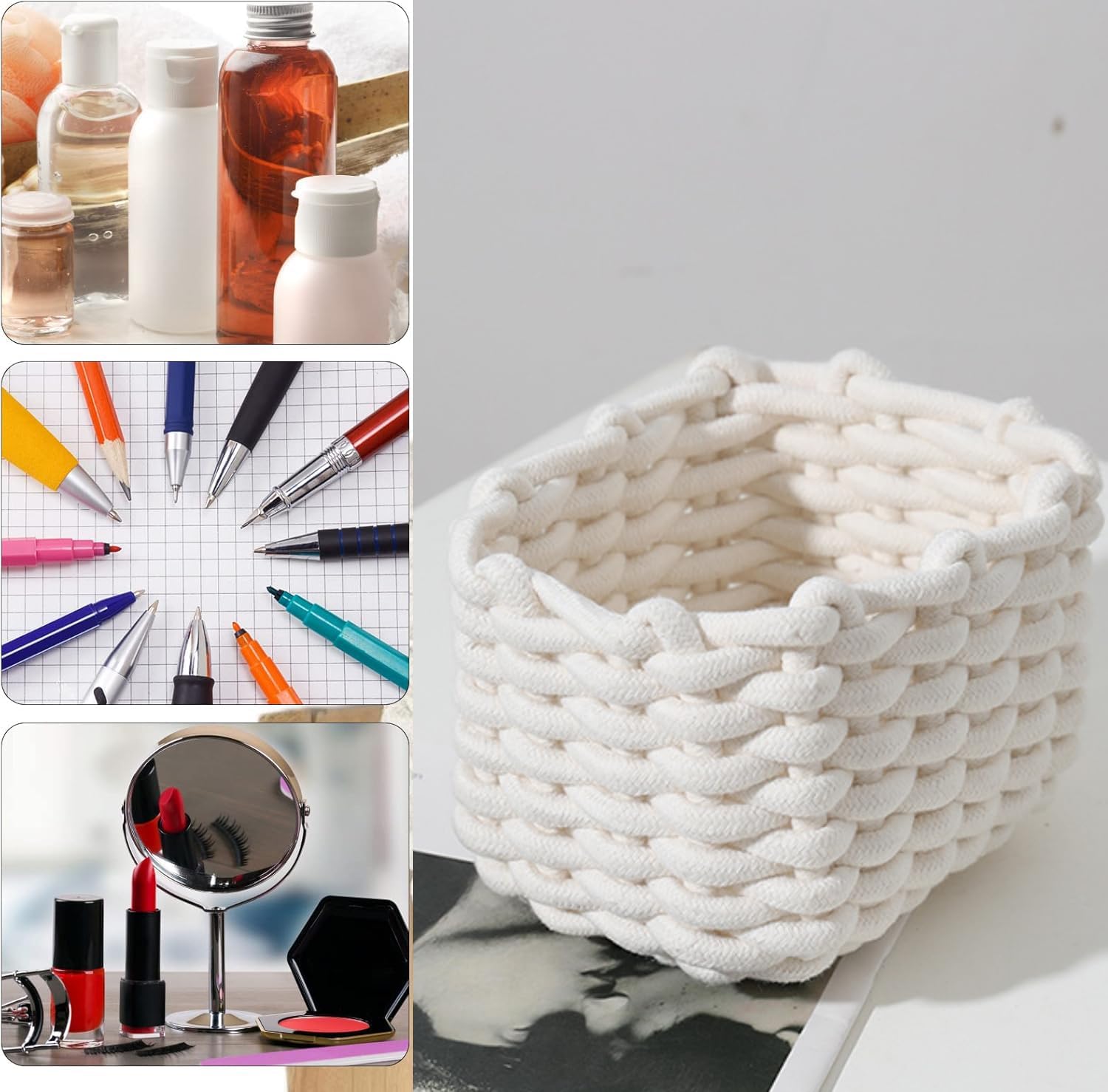 Cotton Rope Basket Woven Storage Baskets White Rope Desktop Basket Organizer Bathroom Storage Basket for Cupboard Nursery Decor