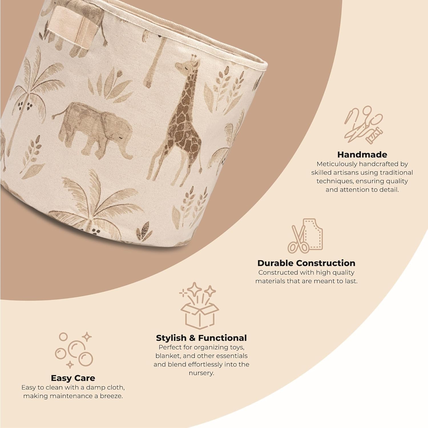 SAFARI STORAGE: Unleash the potential of your safari themed nursery with our Crane Baby Fabric Round Nursery Storage Basket. This multi-functional basket enhances your safari themed nursery decor by bringing order to your nursery, playroom, or any cluttered room.