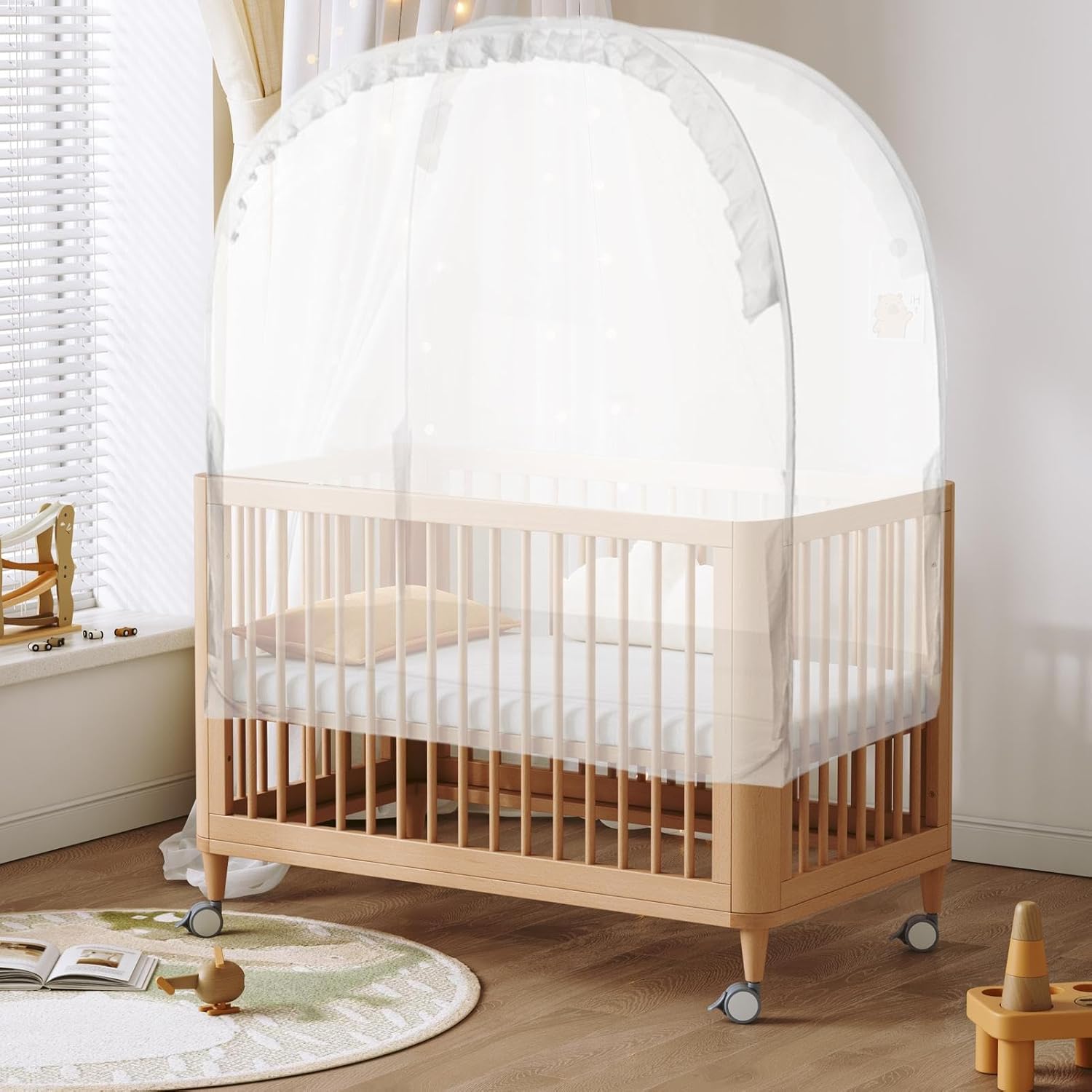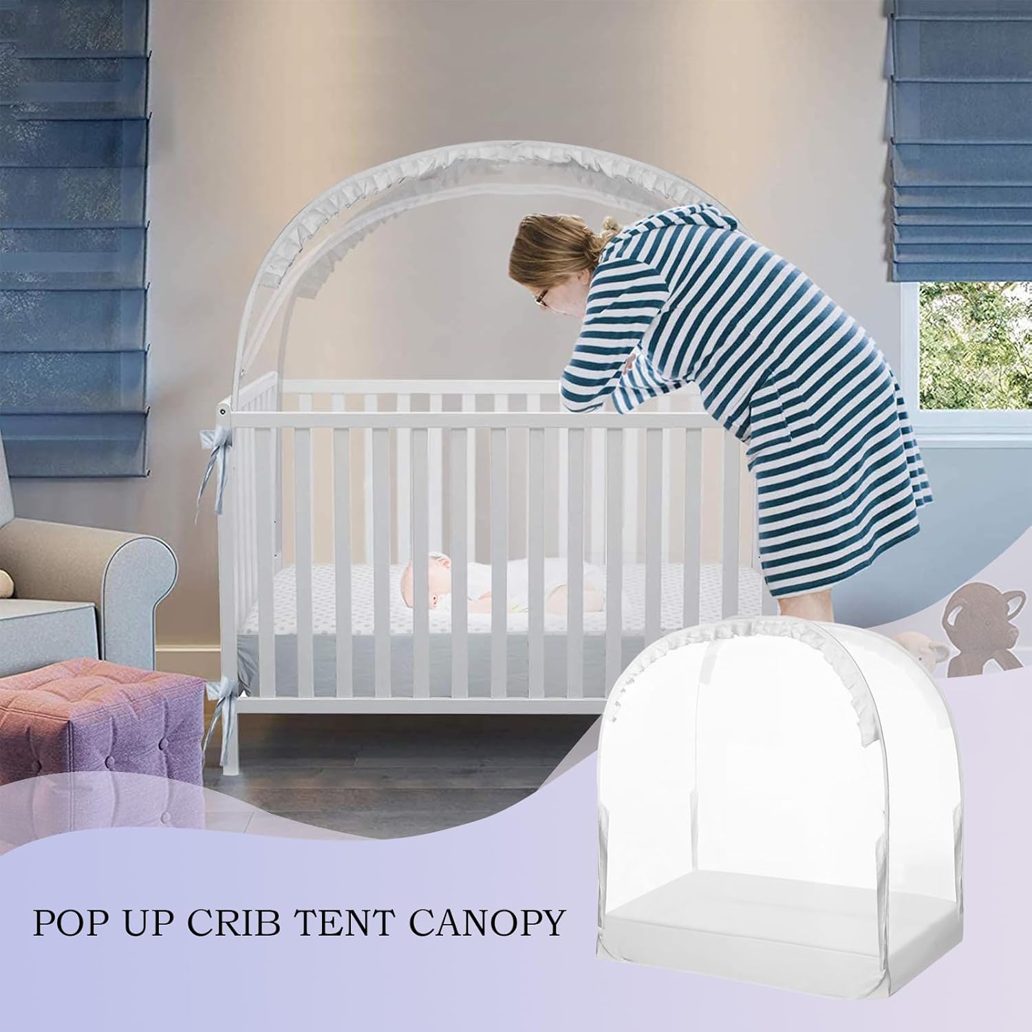 Crib Tent, Breathable Mesh Crib Cover, 27.56×51.18×55.12 inches Adorable Sleep Protector, Pop-Up Beds Protection to Prevent Baby Climbing Out, Toddler Nursery Travel Bed Security