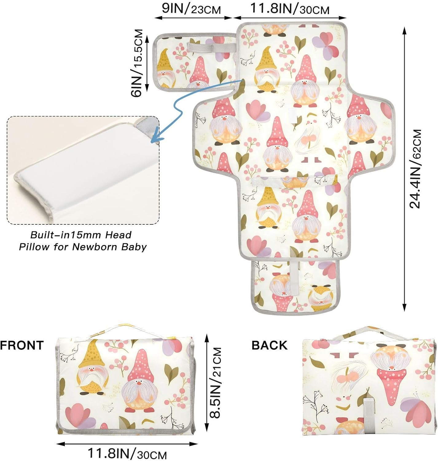 Cute Cartoon Gnome Reusable Changing Table Mat with Tissue Pocket Portable Baby Changing Mat Travel Station Kit cambiador de pa?ales para Bebes
